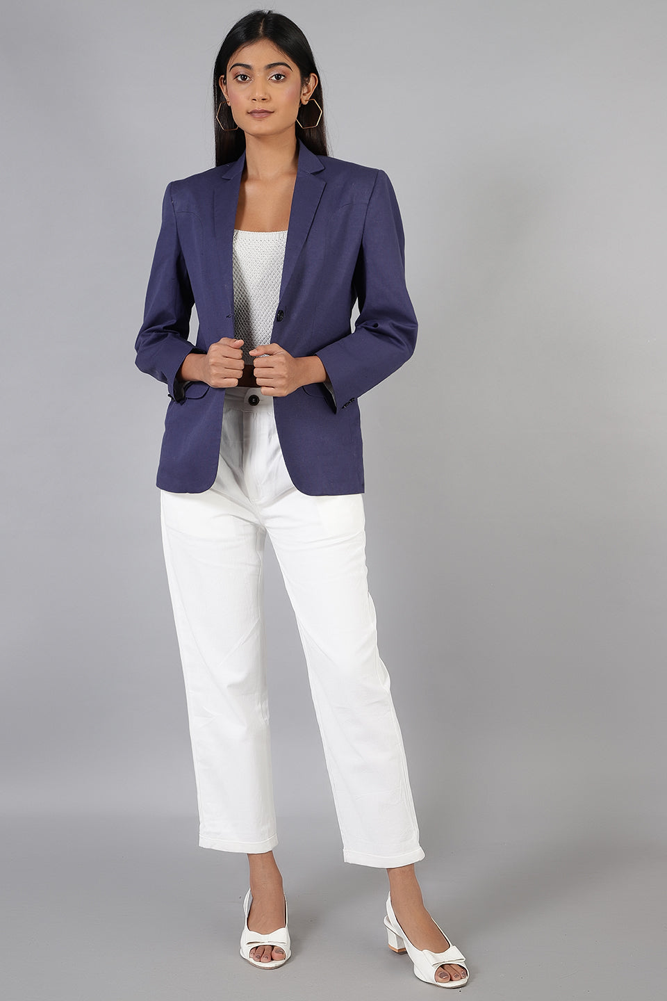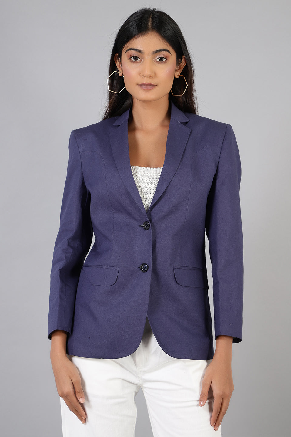 Cotton Linen Blue Blazer