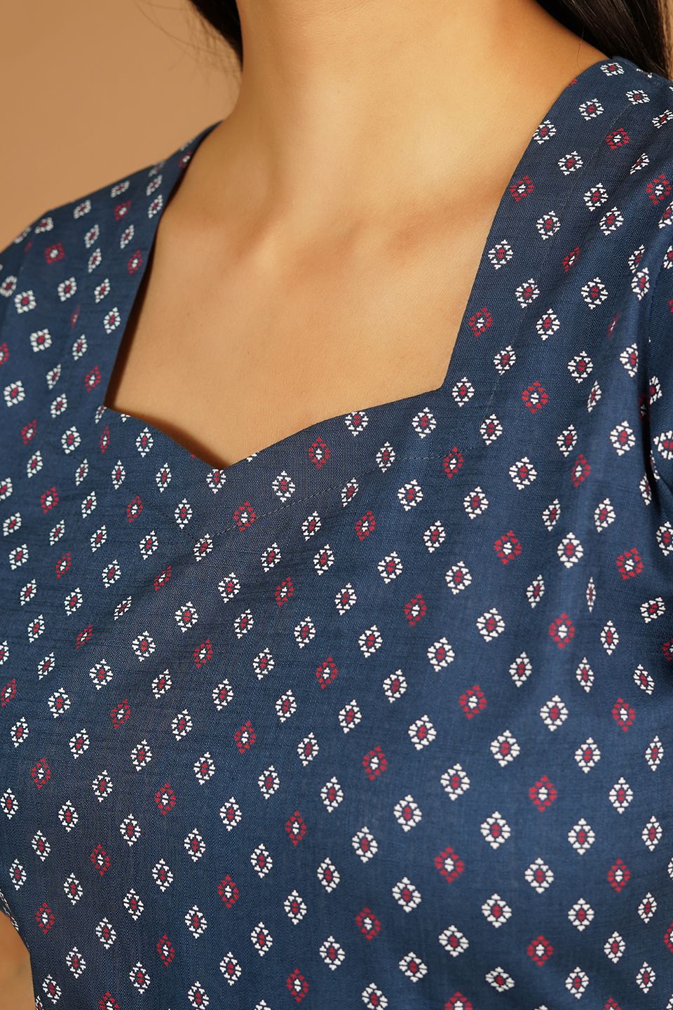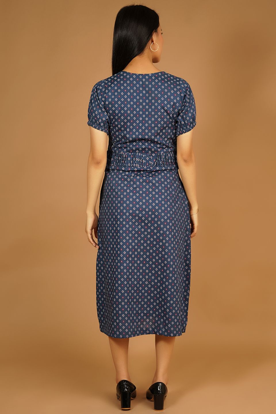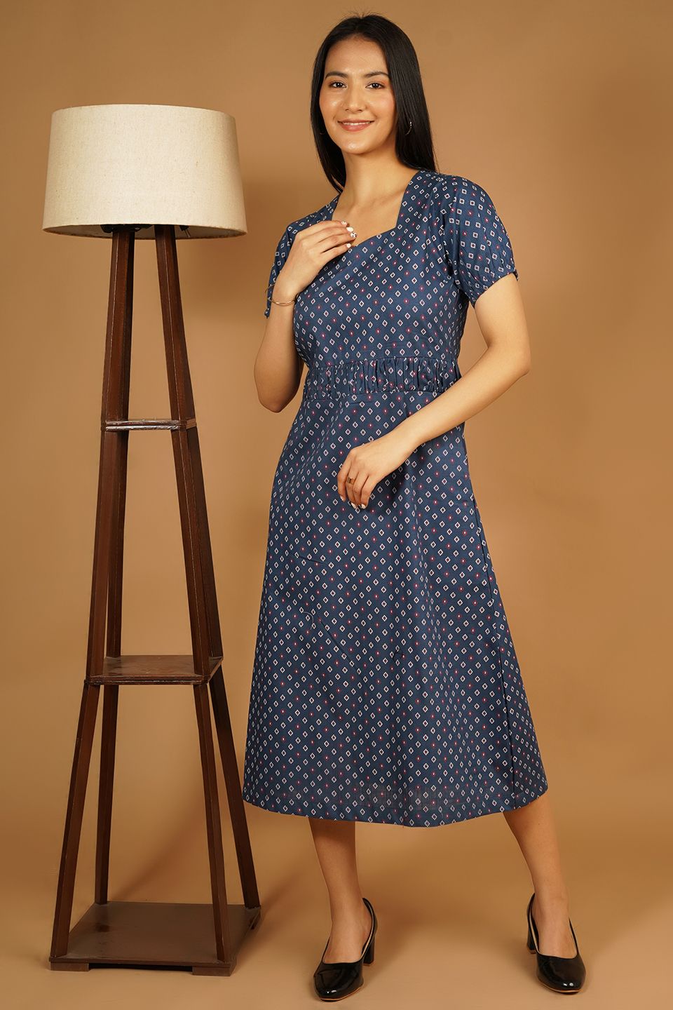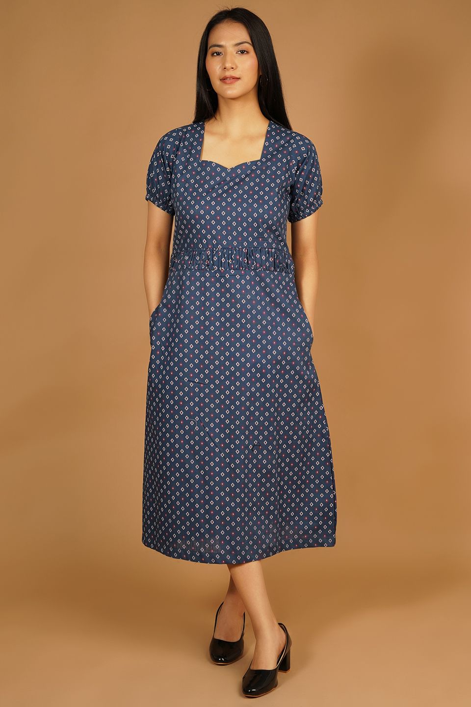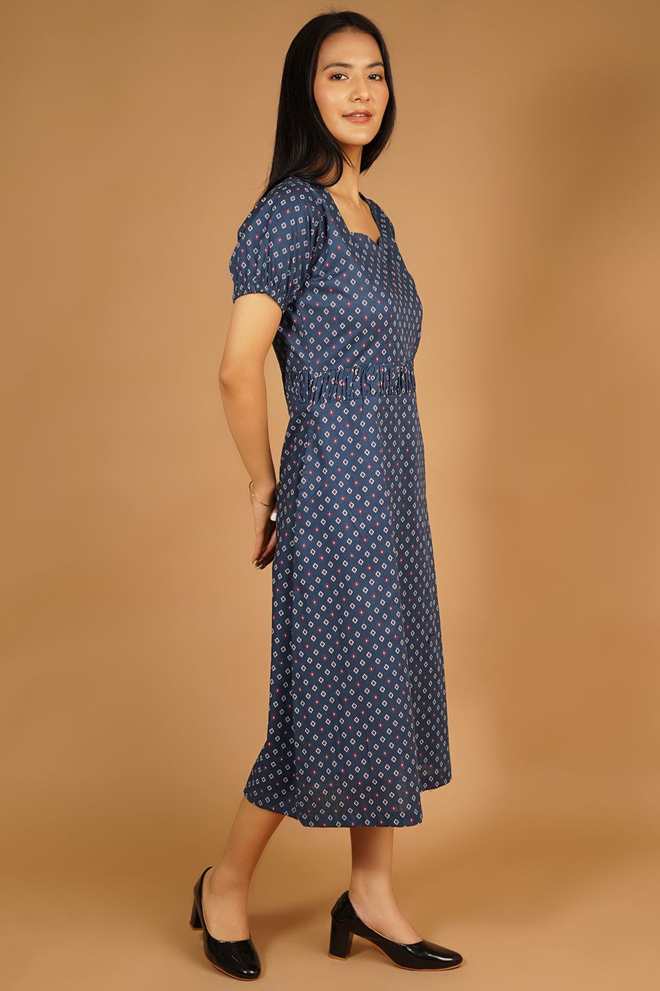 Premium Cotton Dark Blue Midi Dress