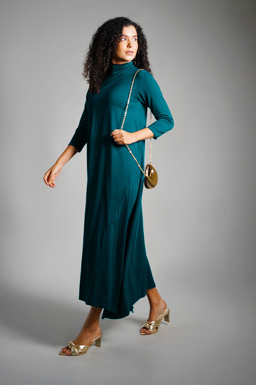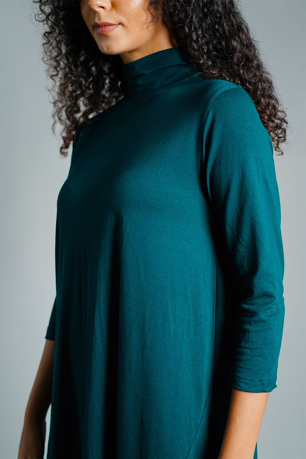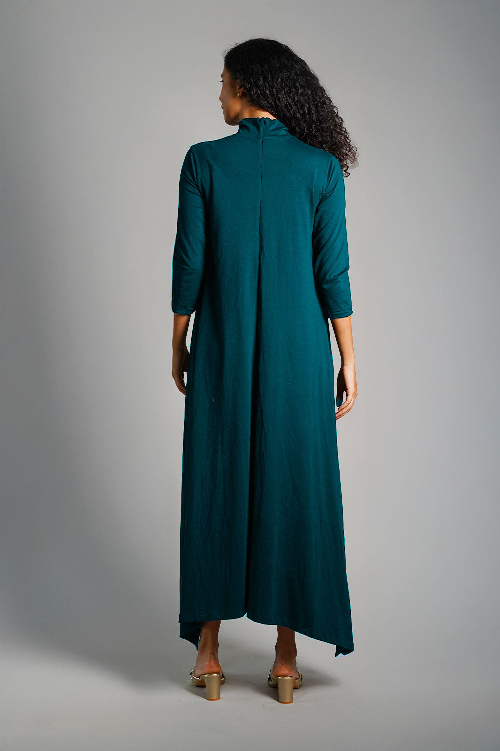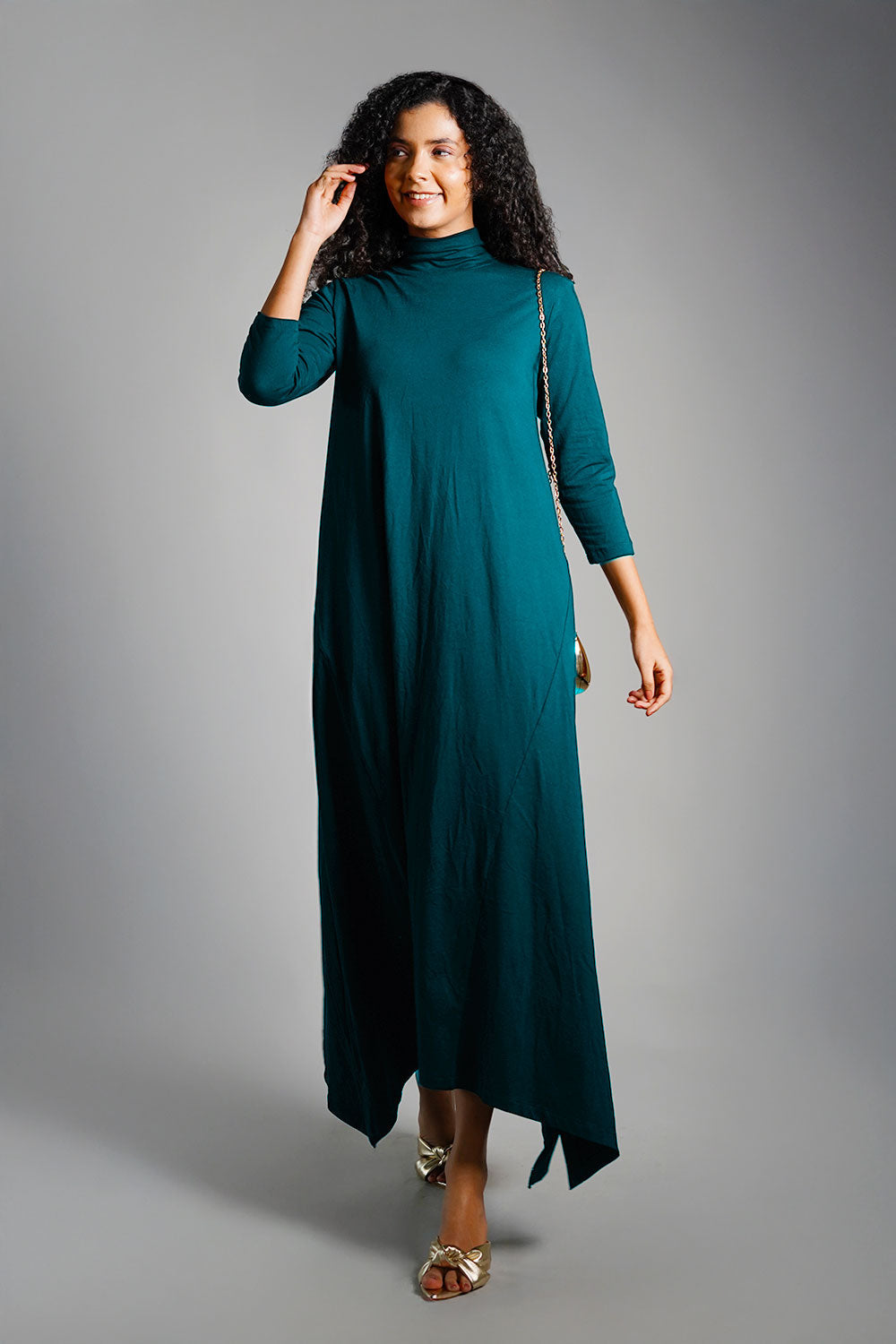 Asymmetric Hem Teal Cotton Jersey Shift Dress