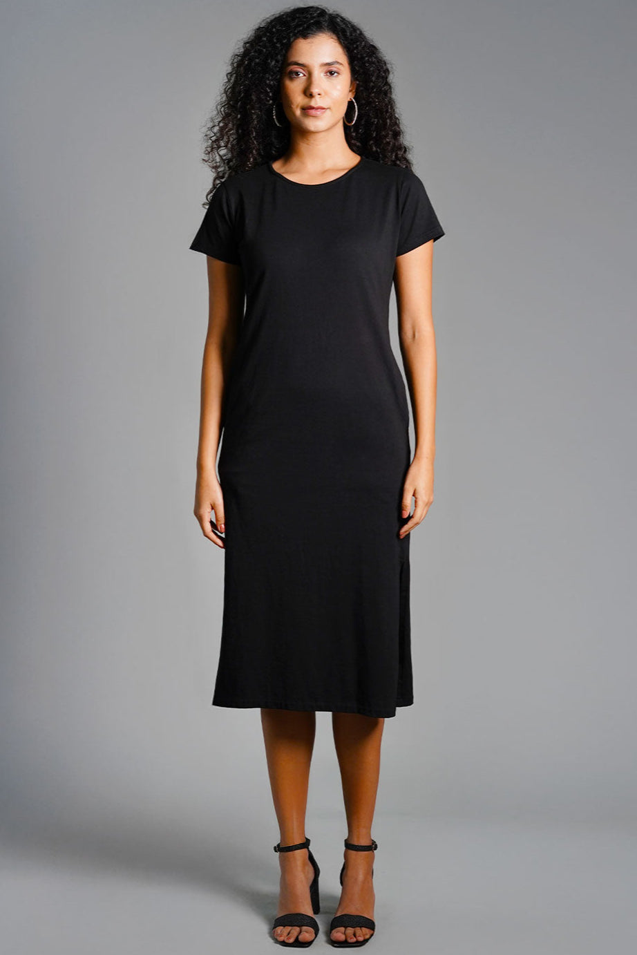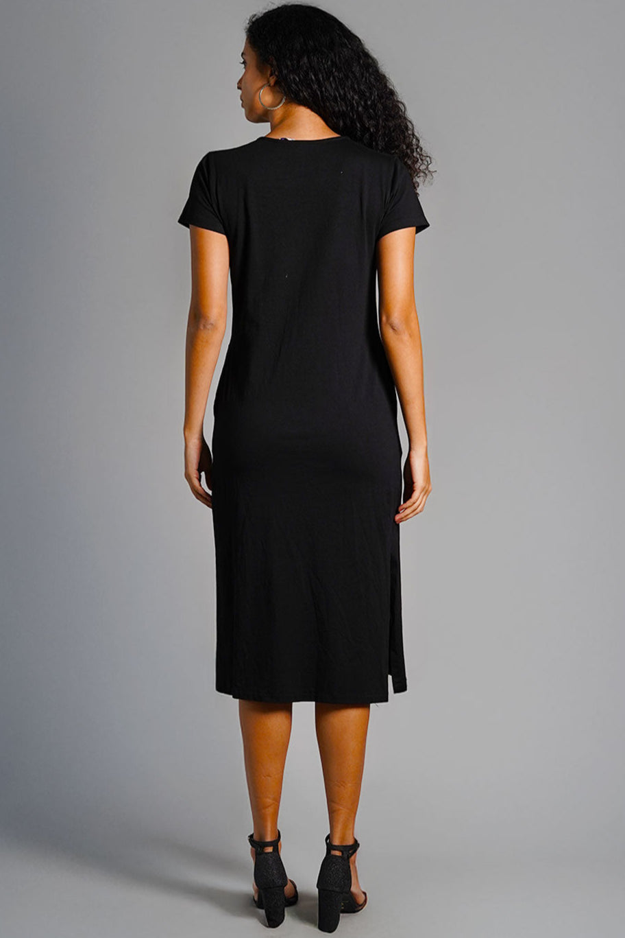 Black Cotton Jersey Vented Shift Dress