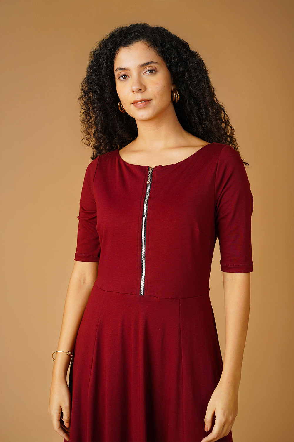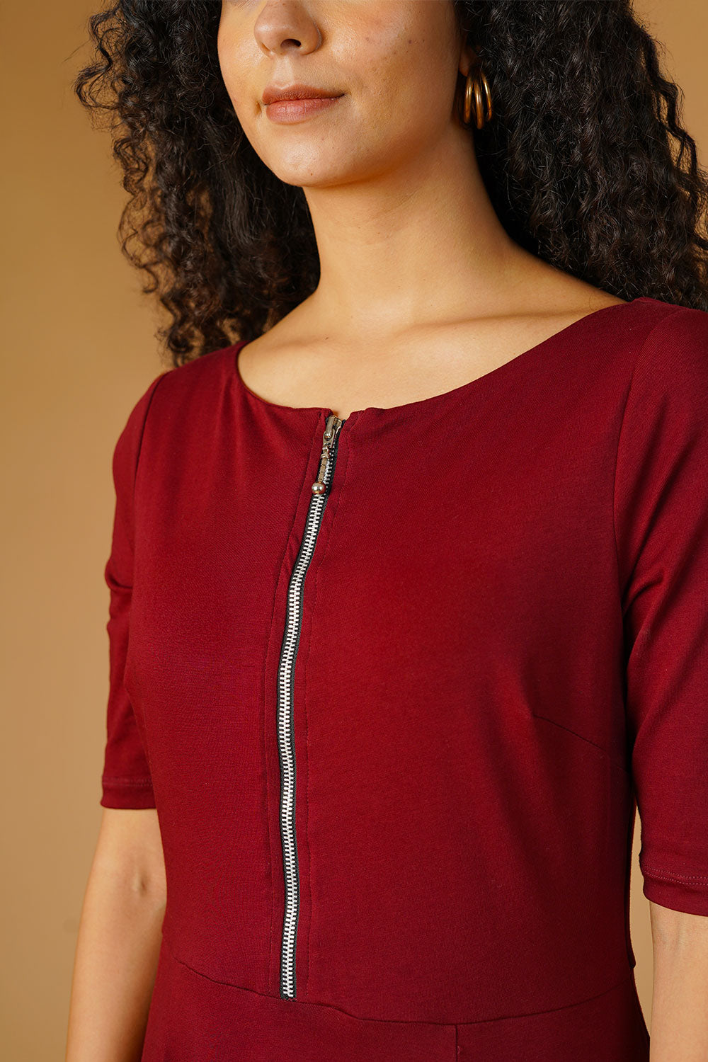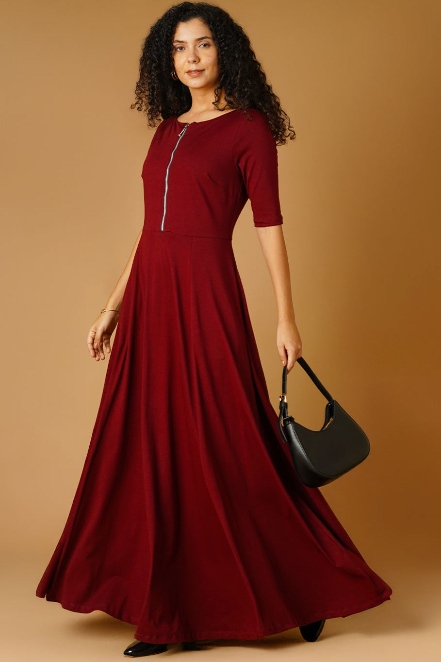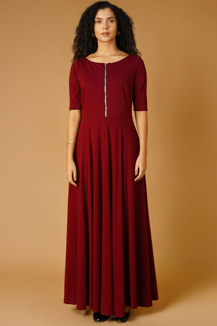 Jersey Maroon Floor Length Dress