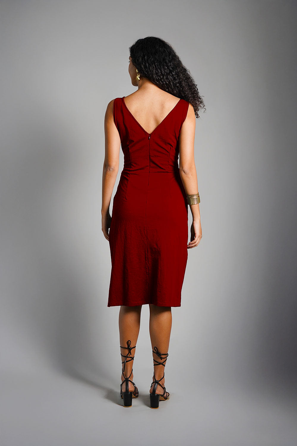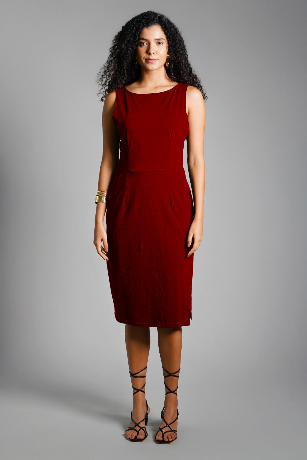 Maroon Cotton Jersey Knit Vented Sheath Dress
