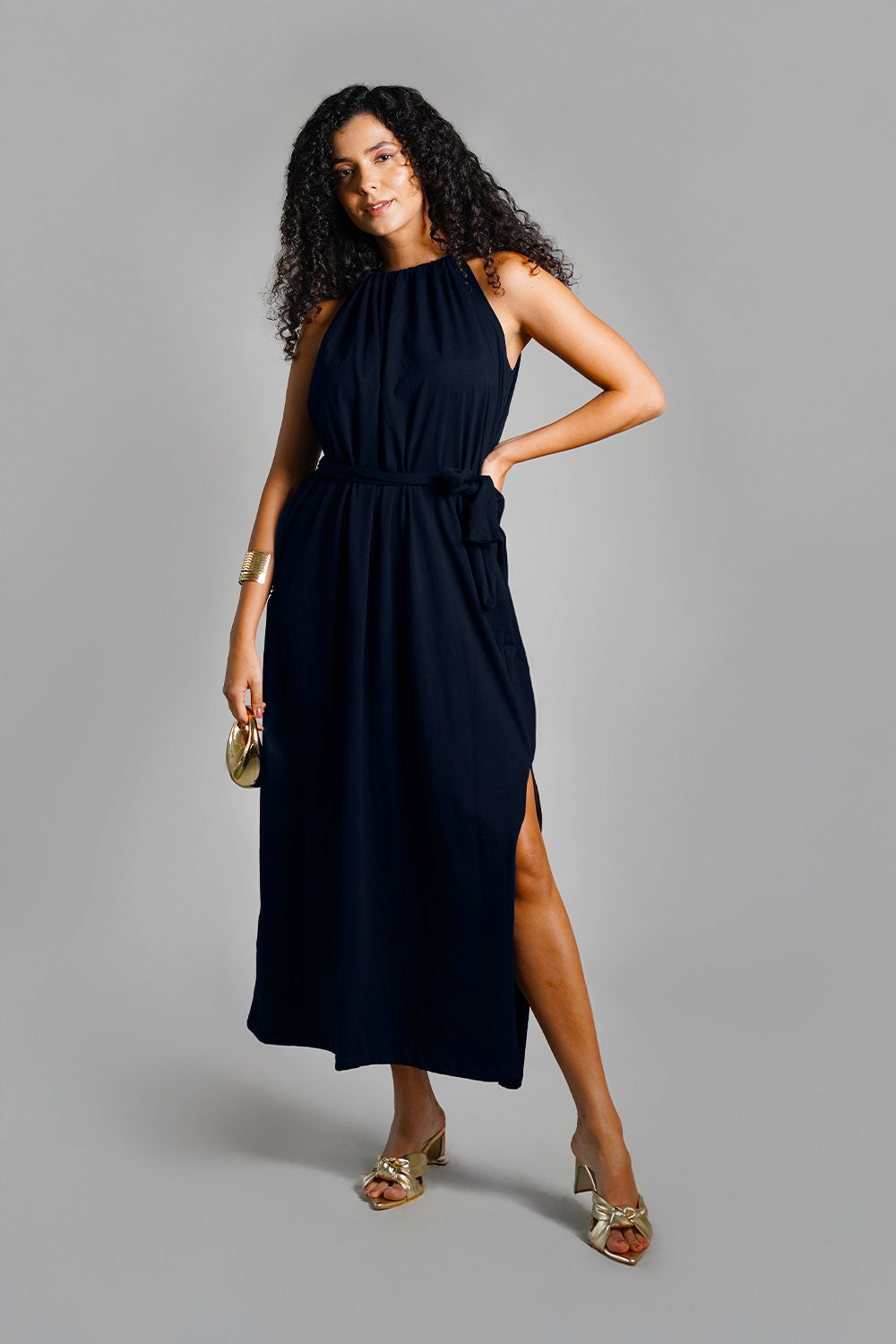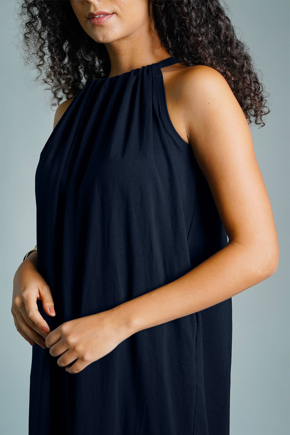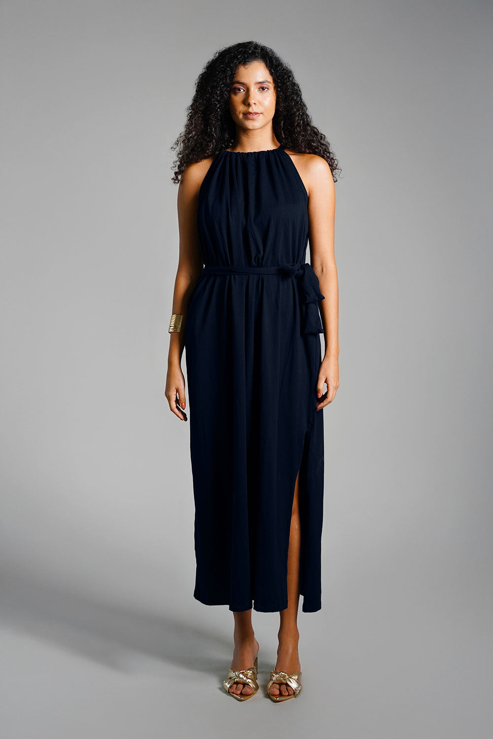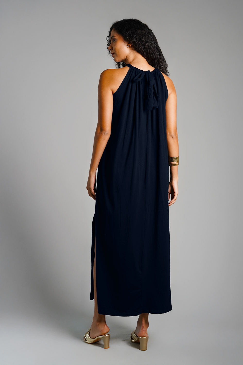 Navy Cotton Jersey Maxi Halter Dress