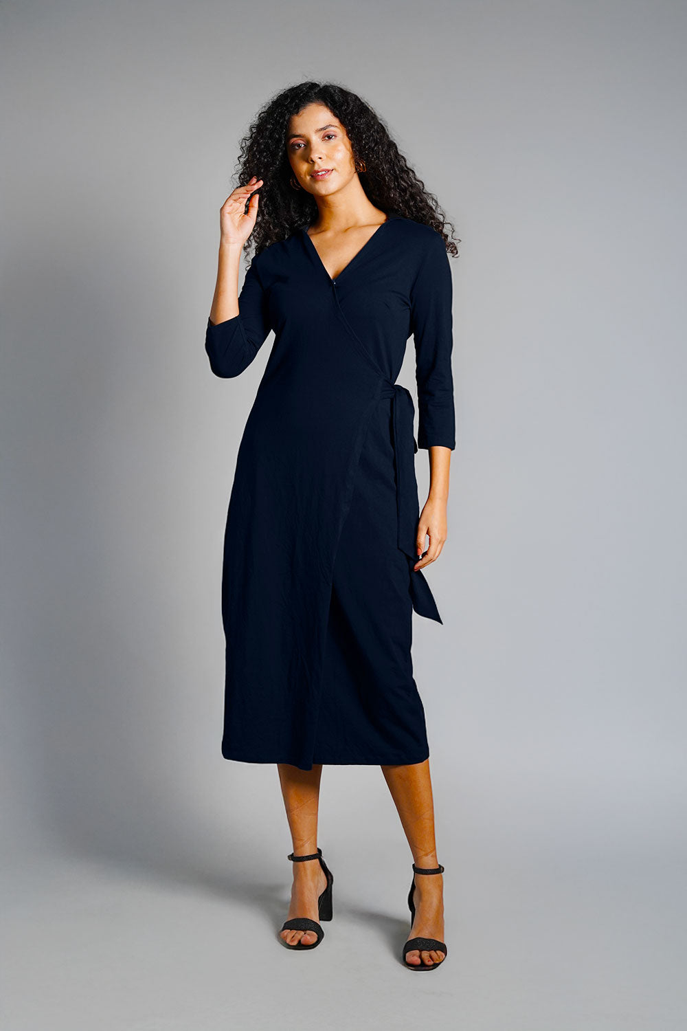 Navy Cotton Jersey Wrap Dress