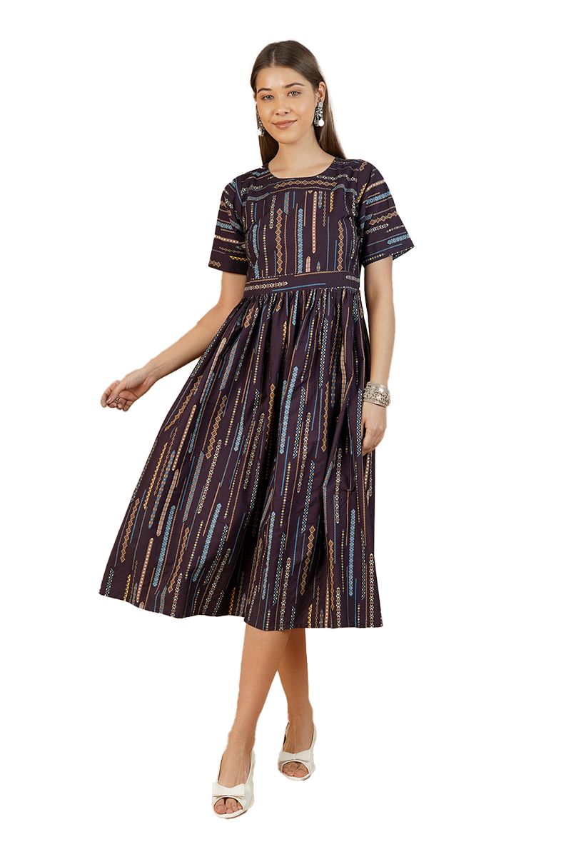 100% Cotton Purple Midi Dress