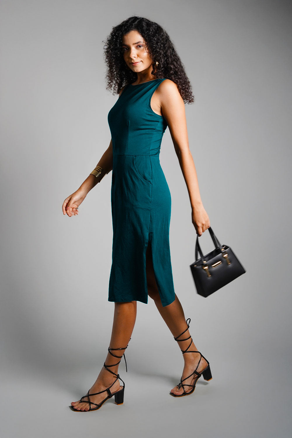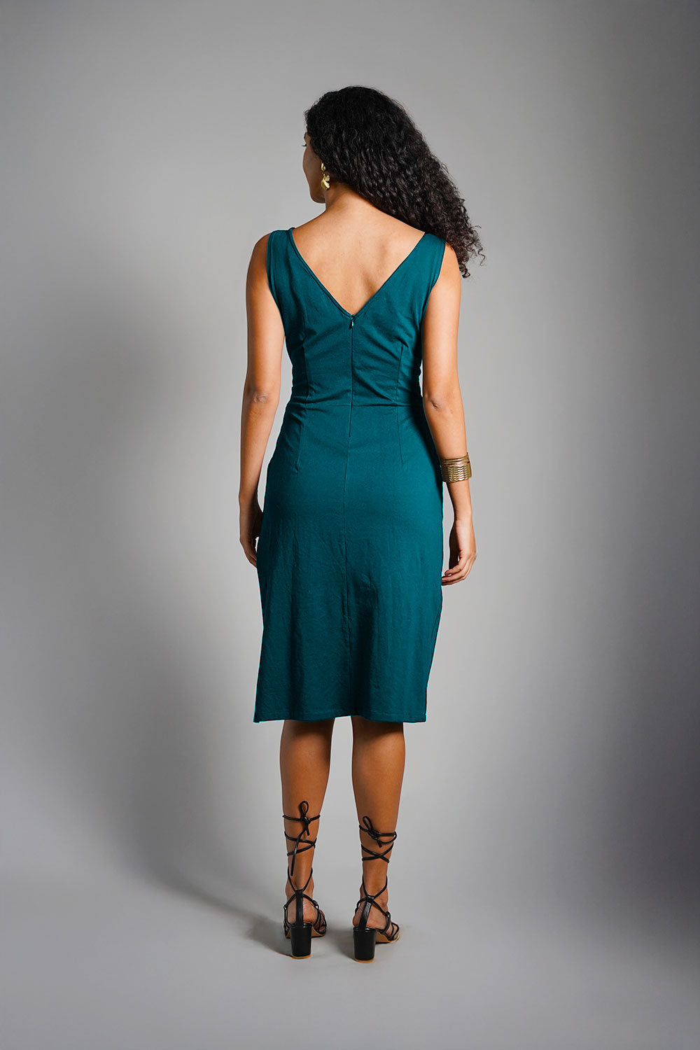 Teal Cotton Jersey Knit Vented Sheath Dress