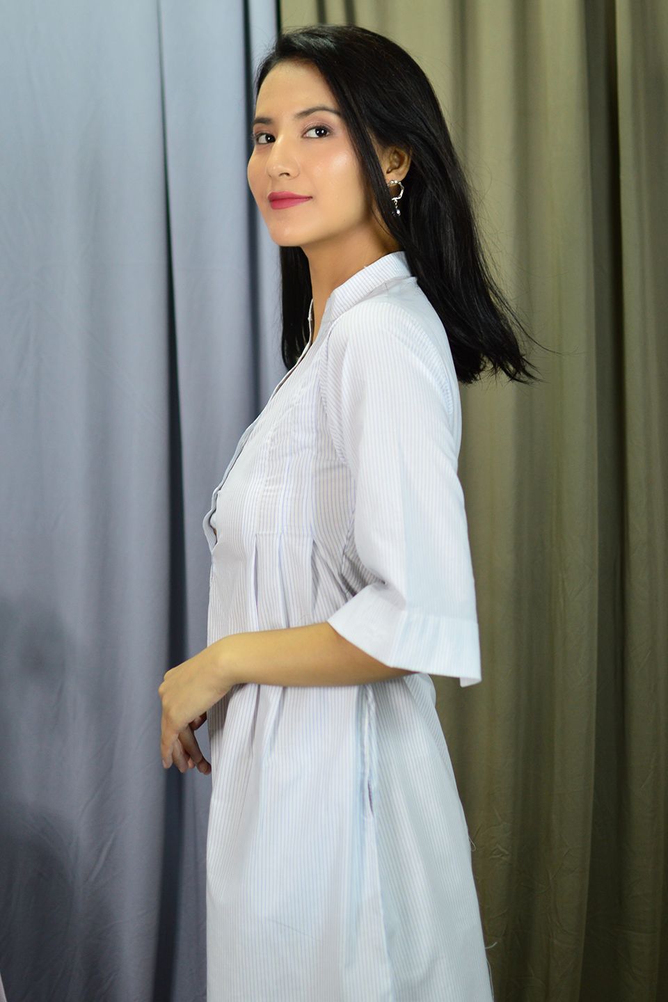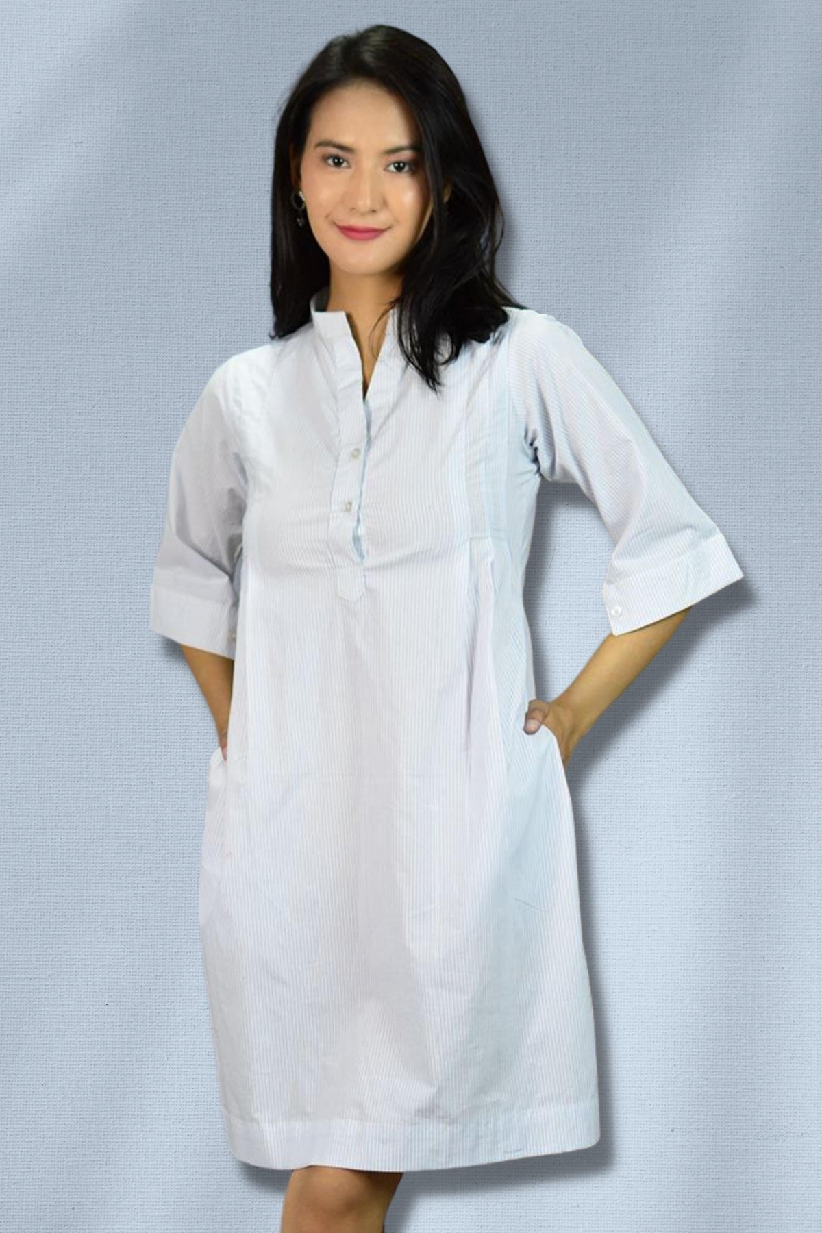 100% Cotton Midi Blue Dress
