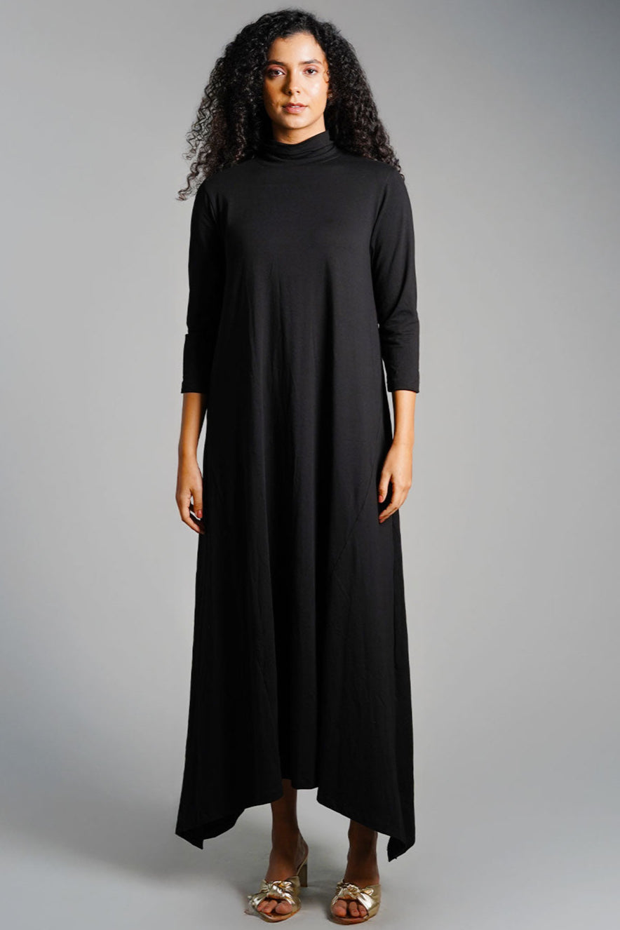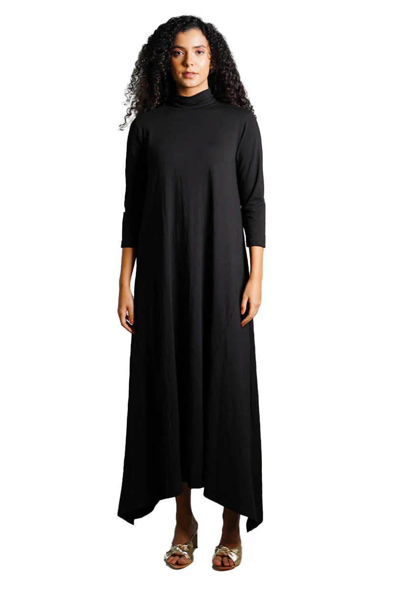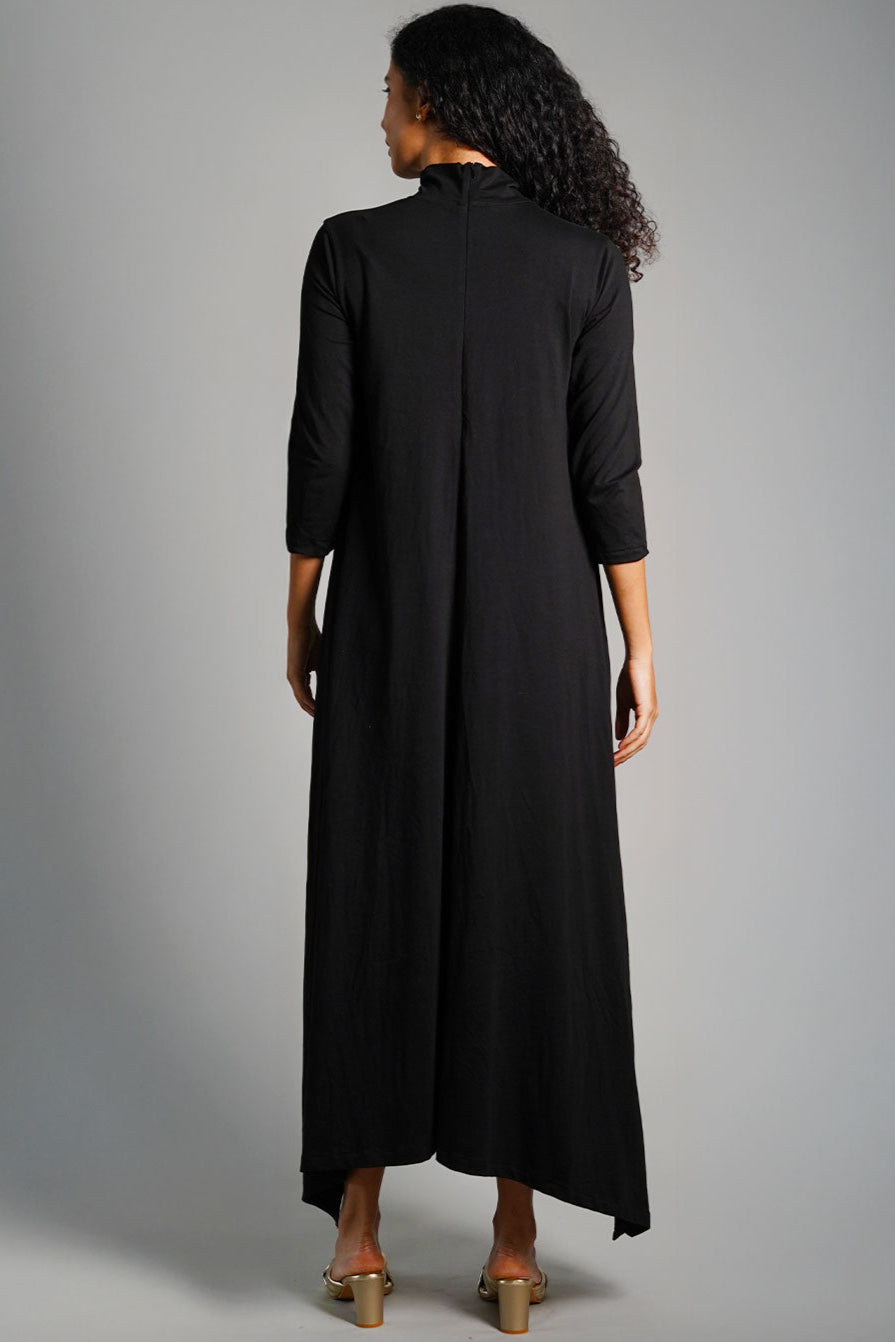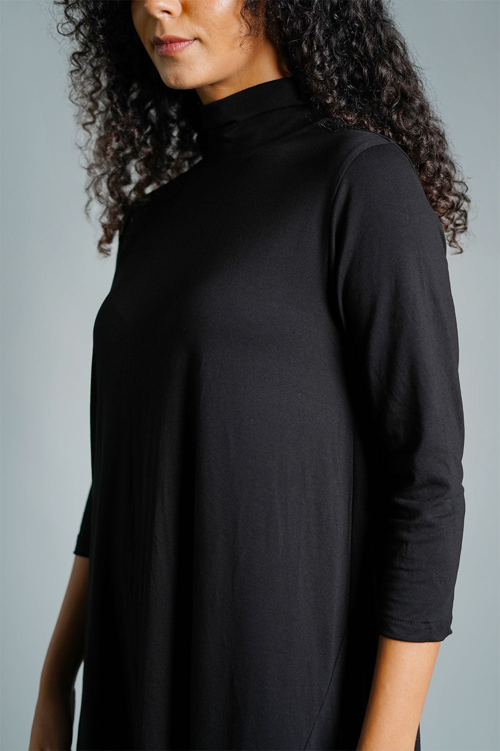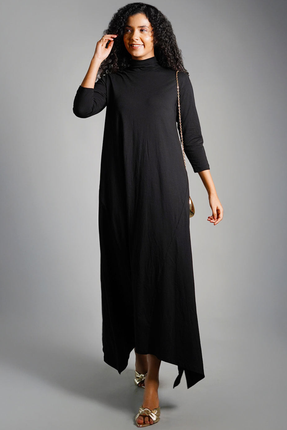 Asymmetric Hem Black Cotton Jersey Shift Dress