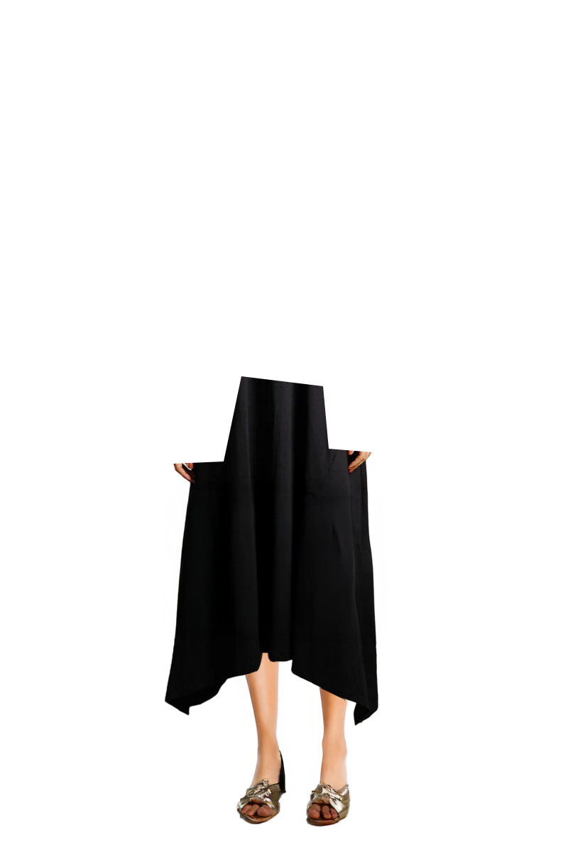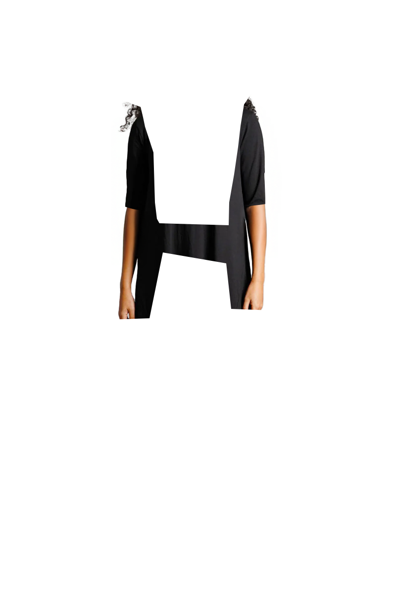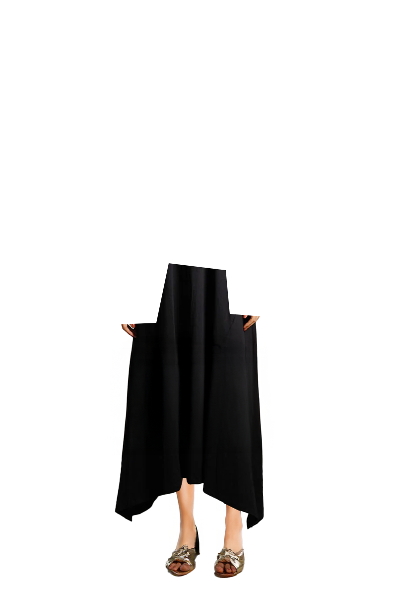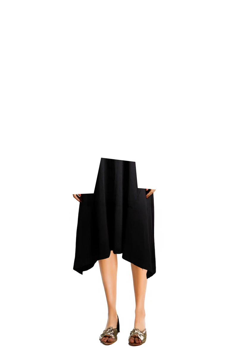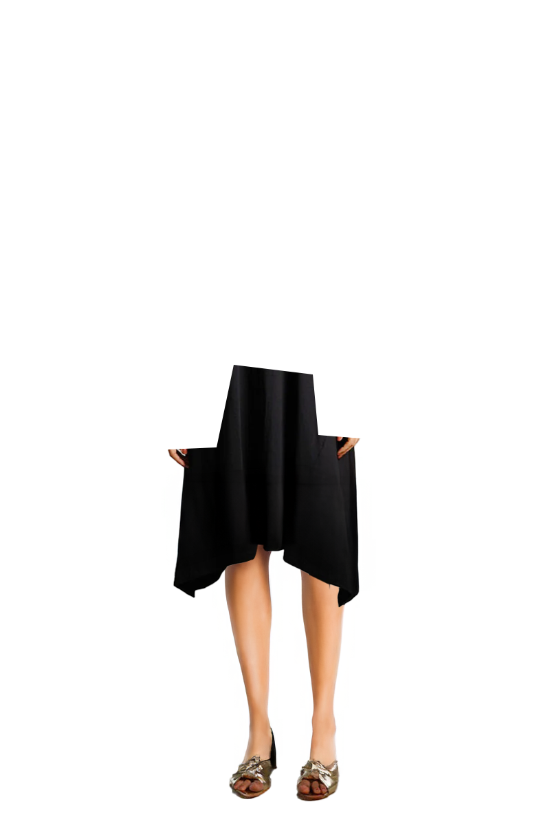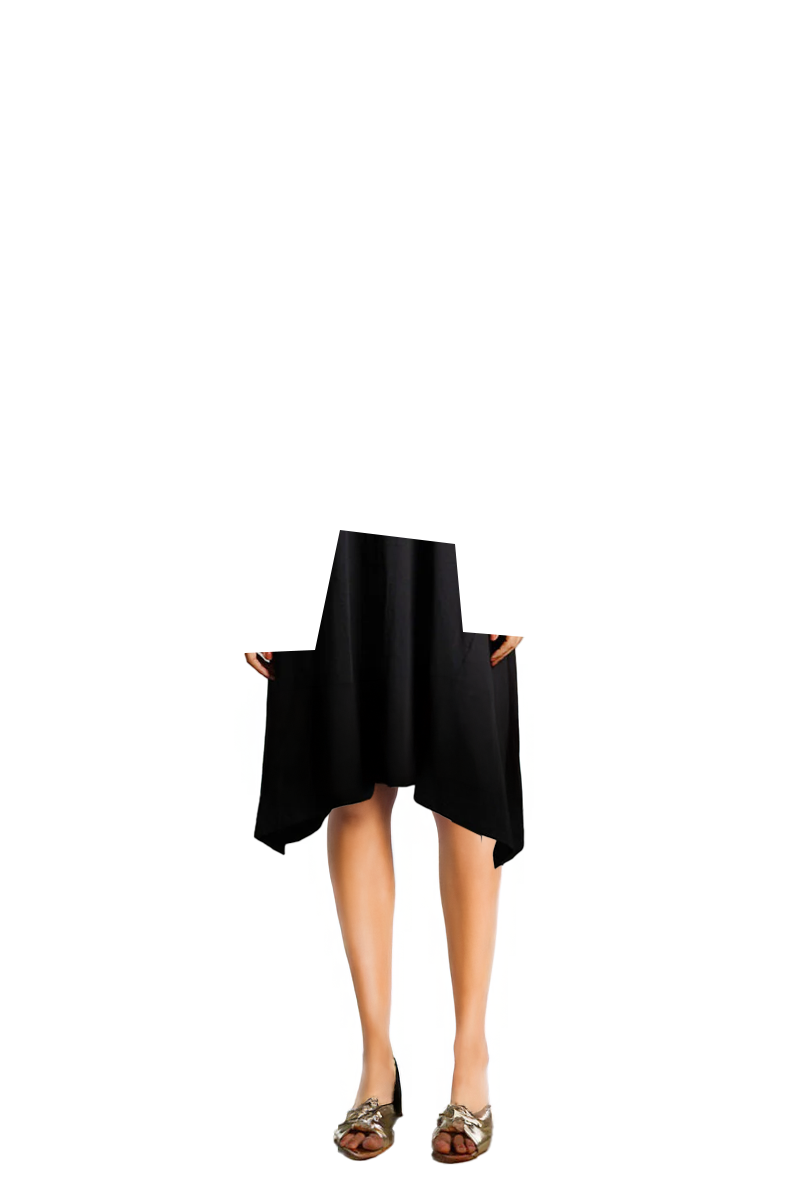 Asymmetric Hem Black Cotton Jersey Shift Dress