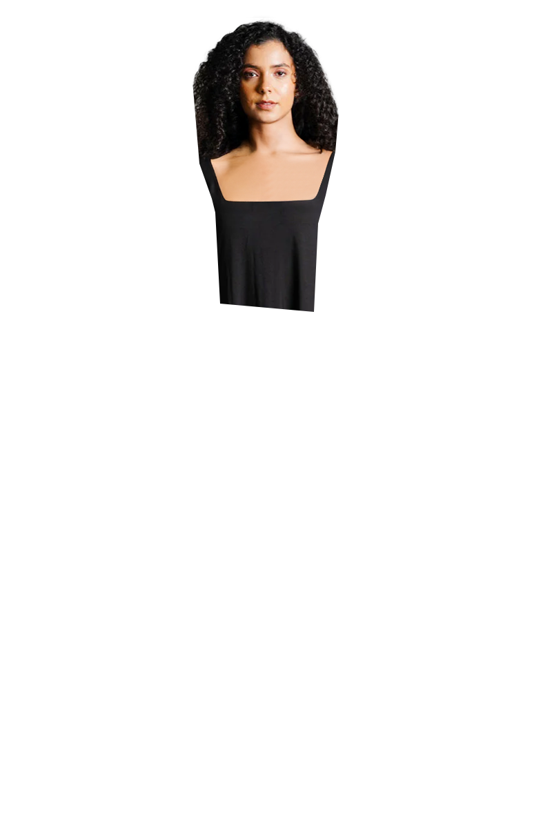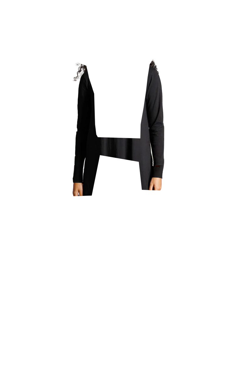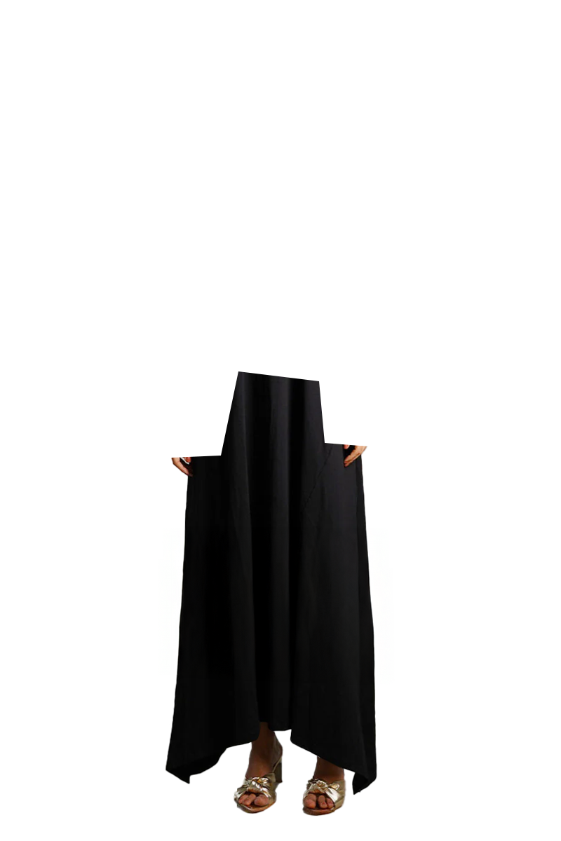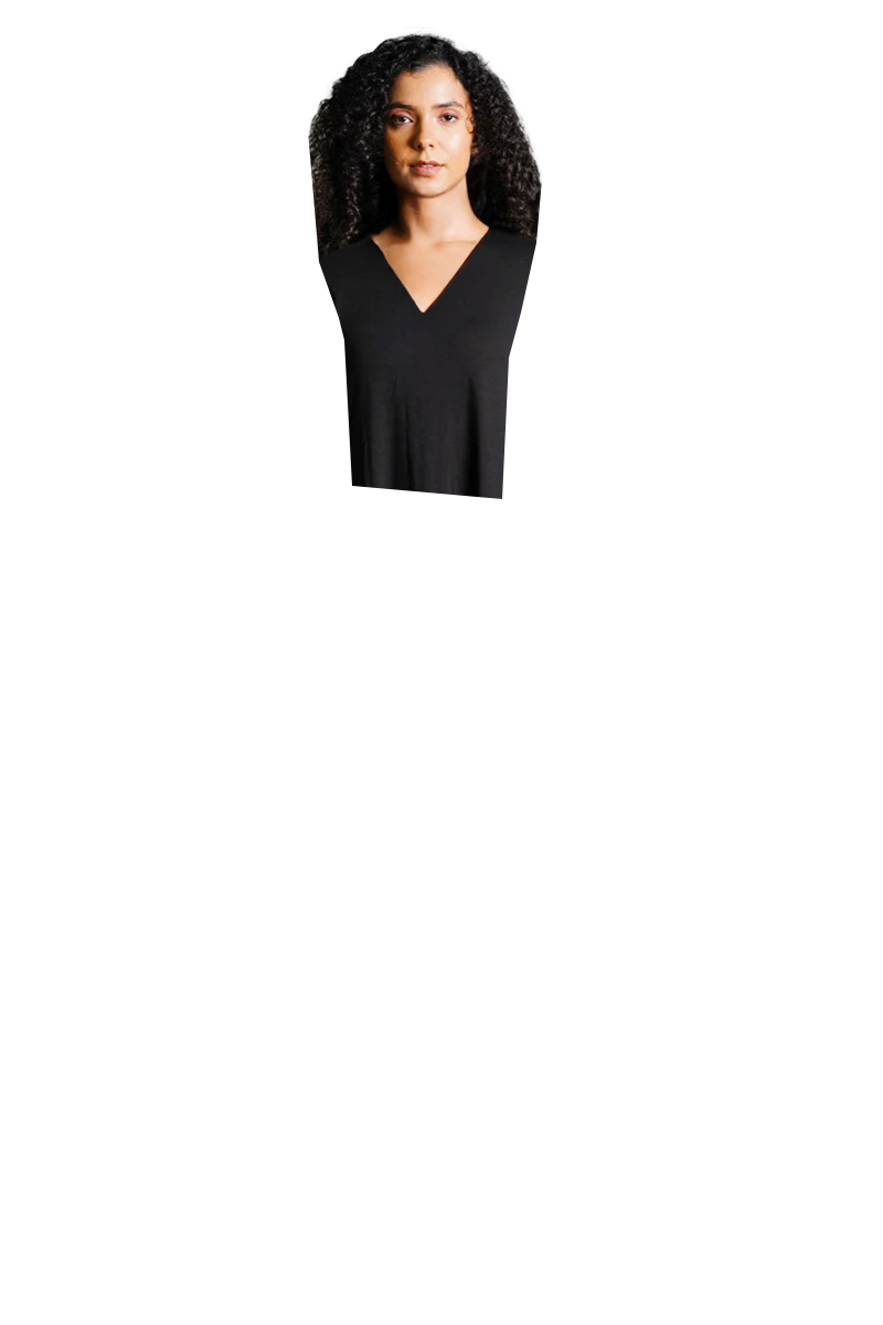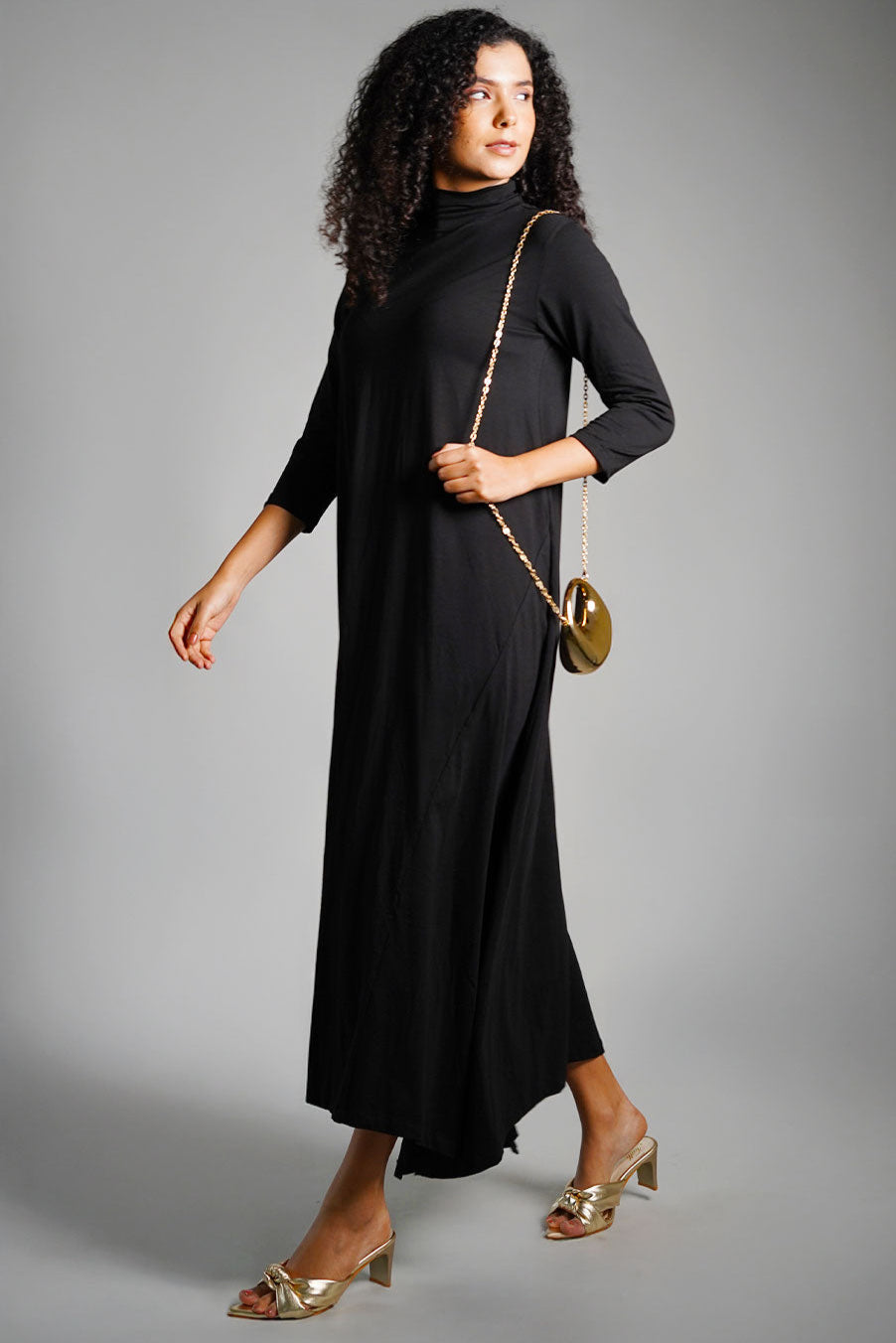 Asymmetric Hem Black Cotton Jersey Shift Dress