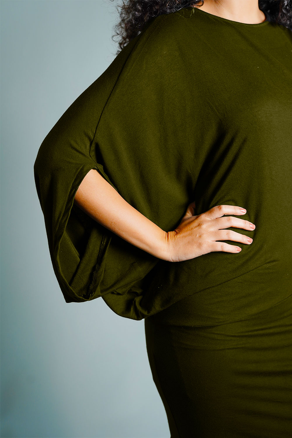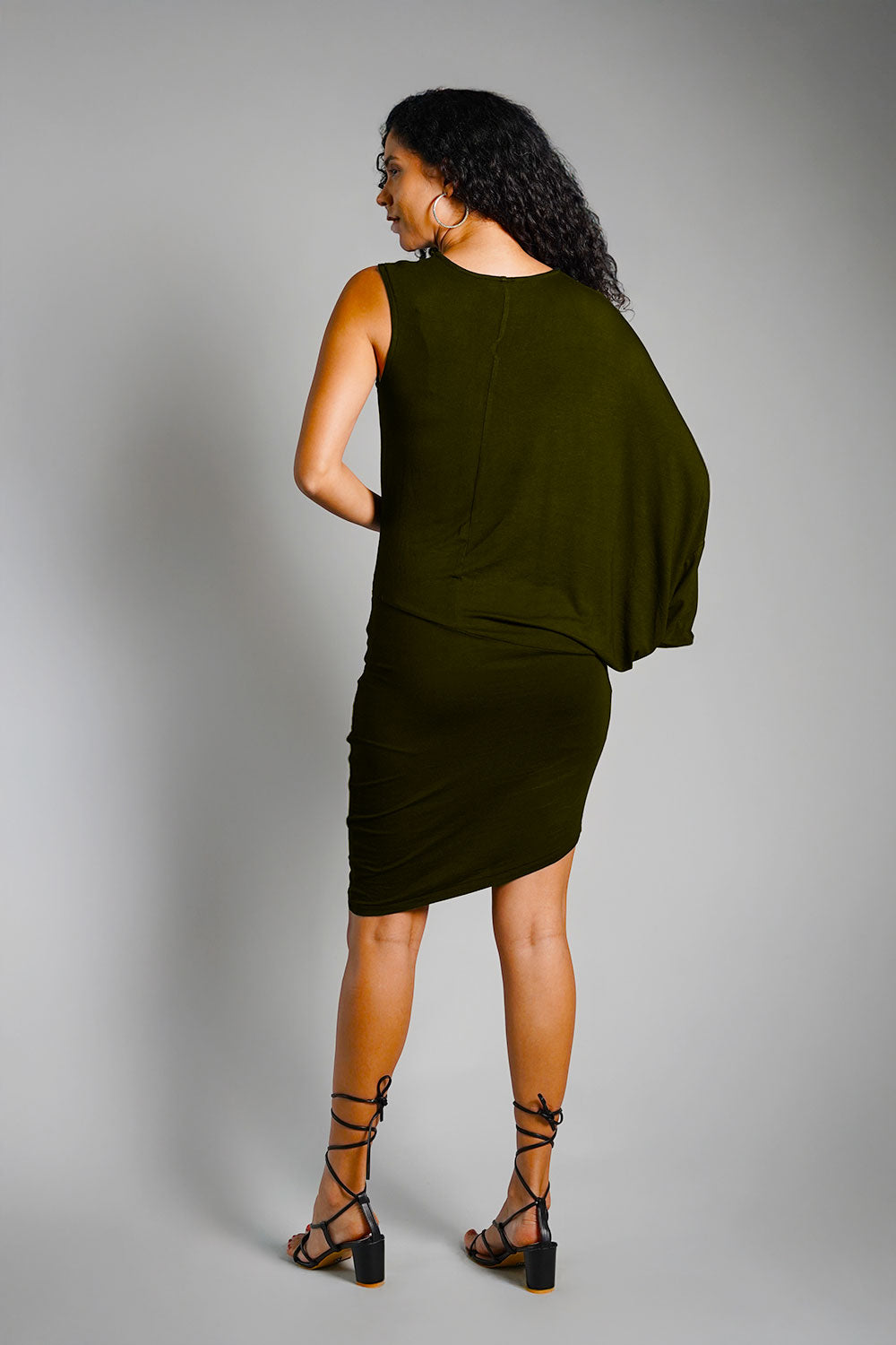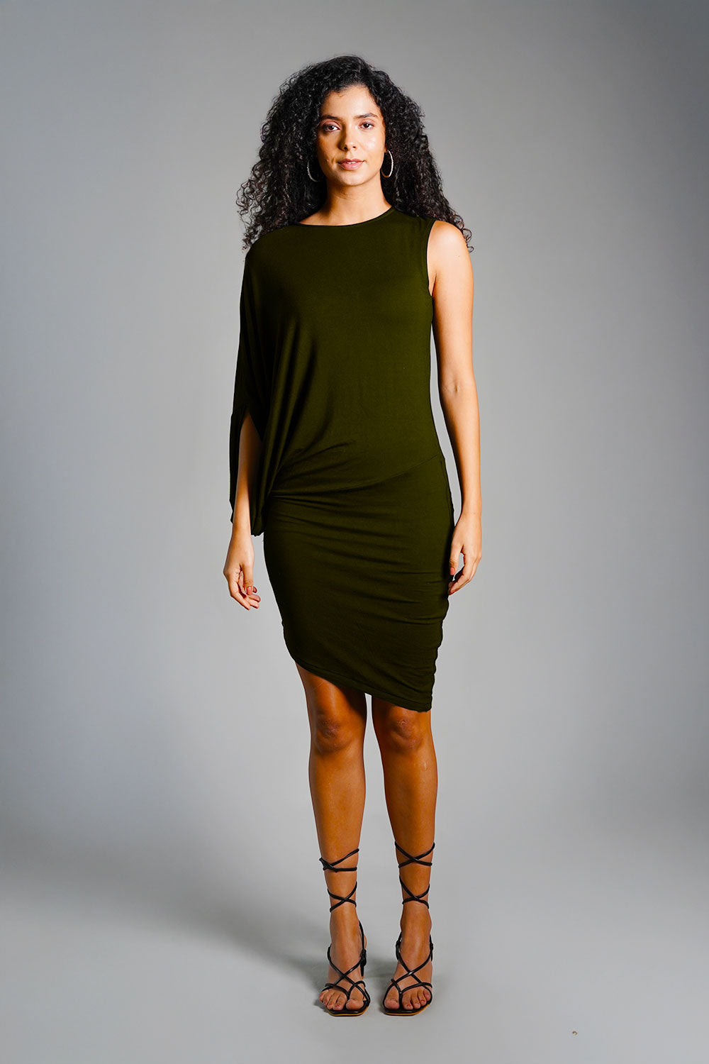 Asymmetric Hem Forest Green Jersey Knit Dress