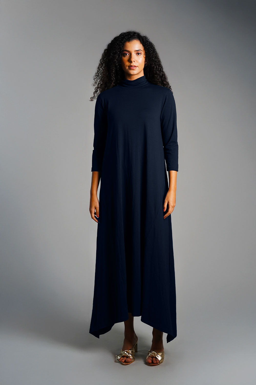 Asymmetric Hem Navy Cotton Jersey Shift Dress