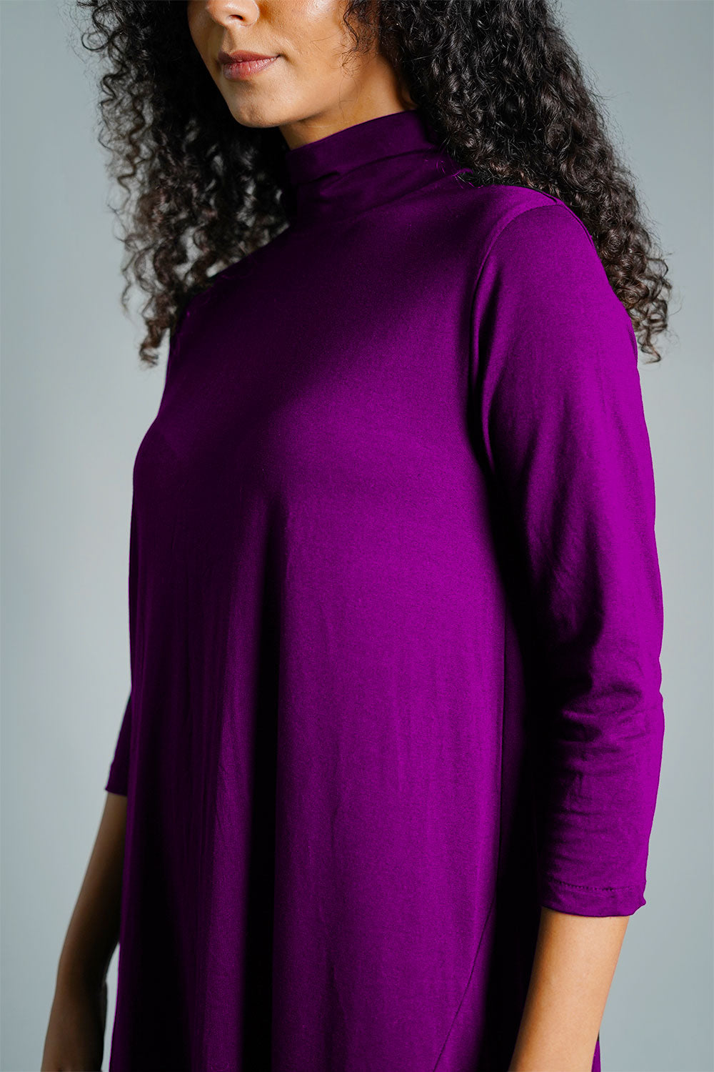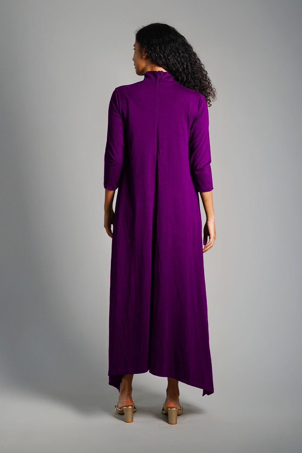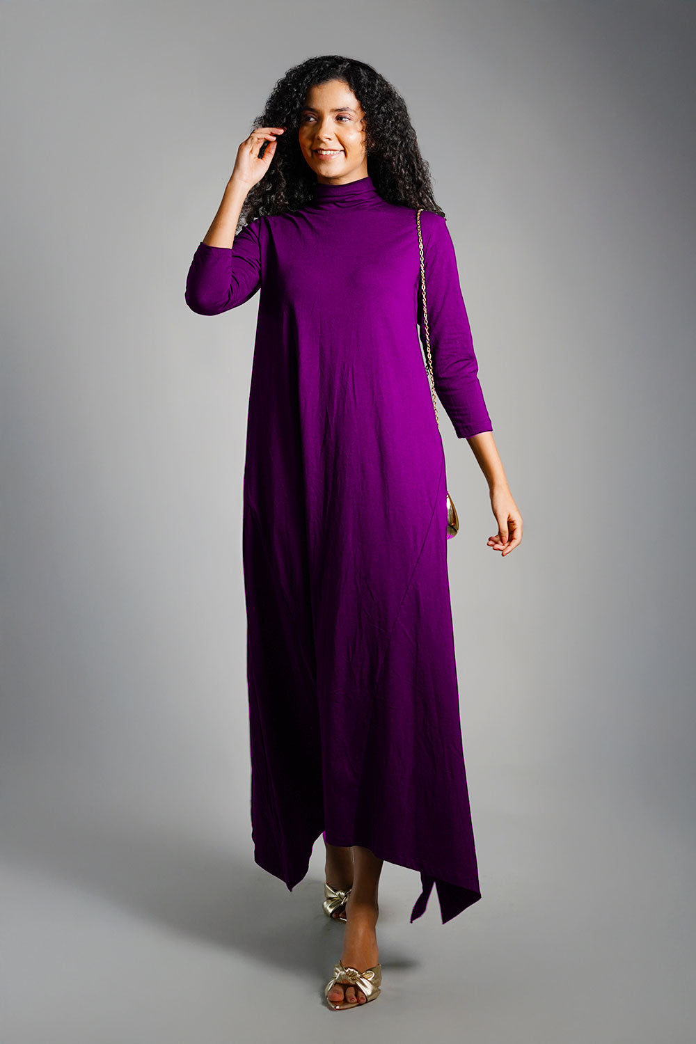 Asymmetric Hem Purple Cotton Jersey Shift Dress