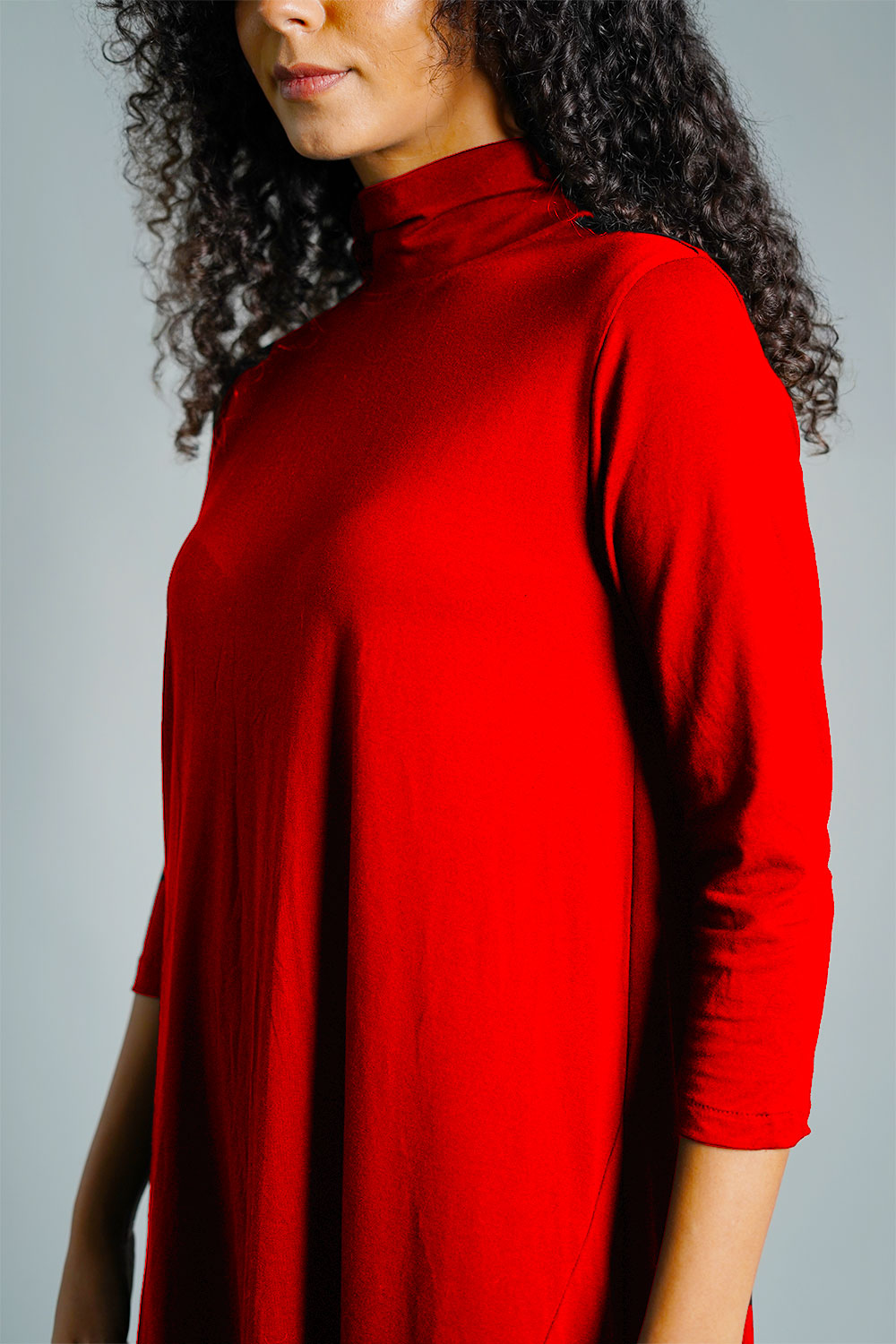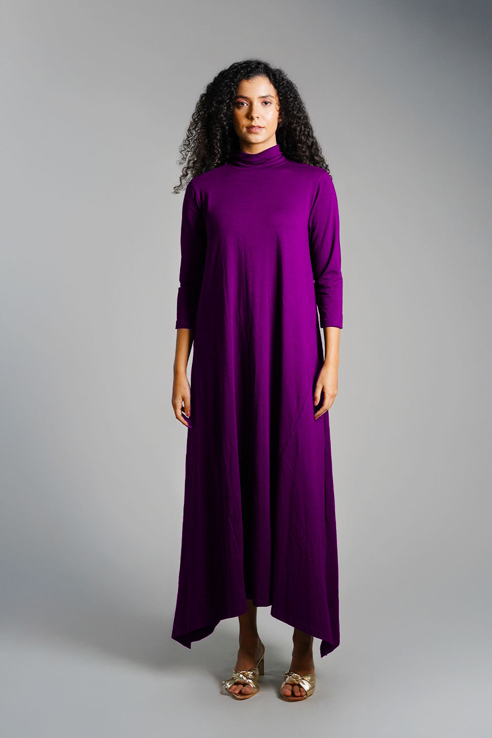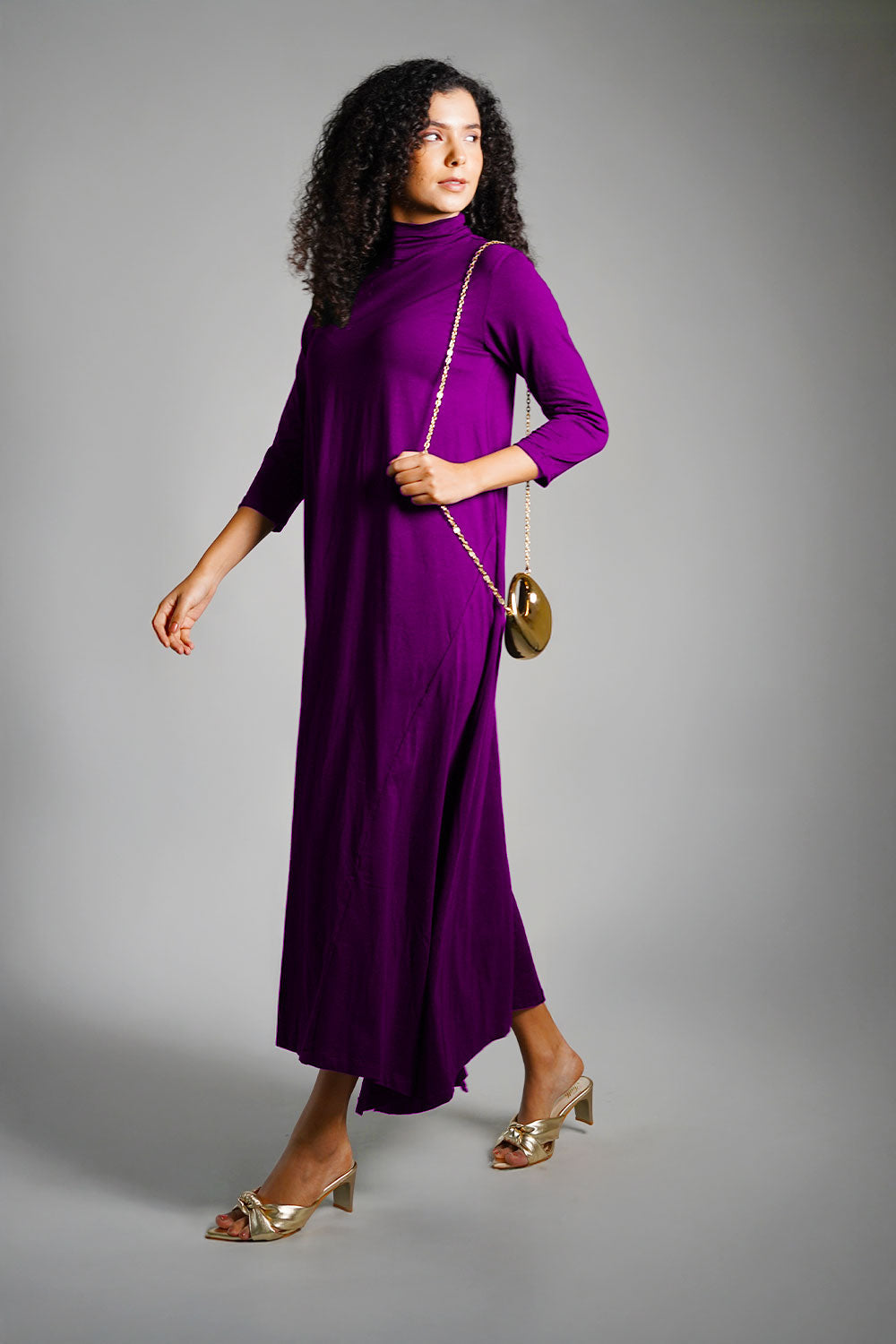 Asymmetric Hem Purple Cotton Jersey Shift Dress