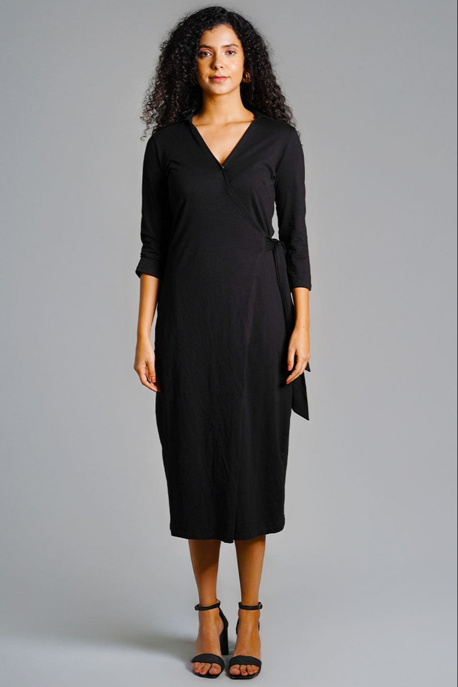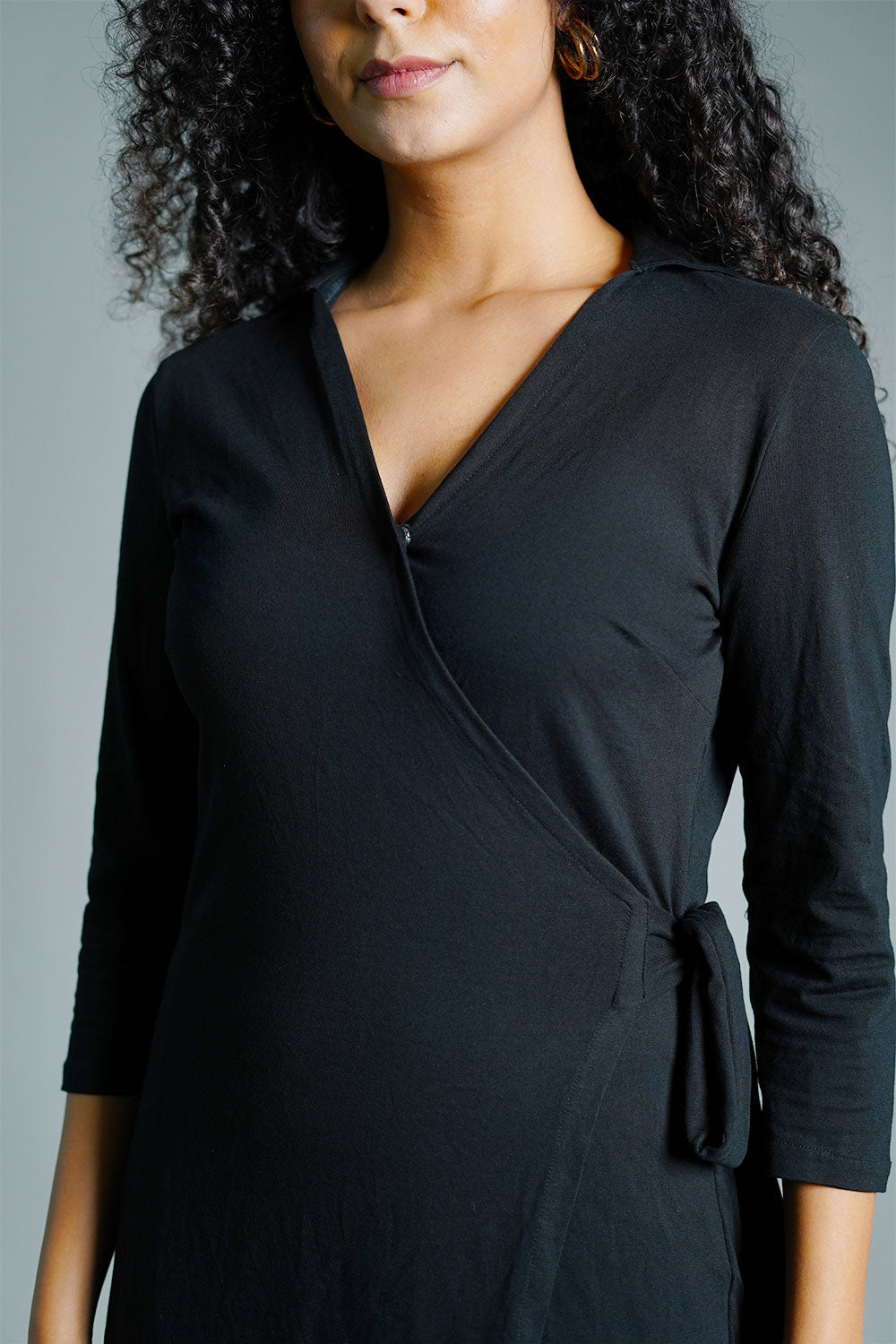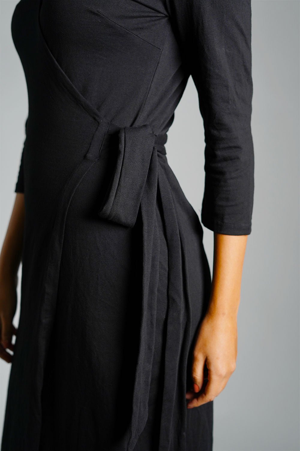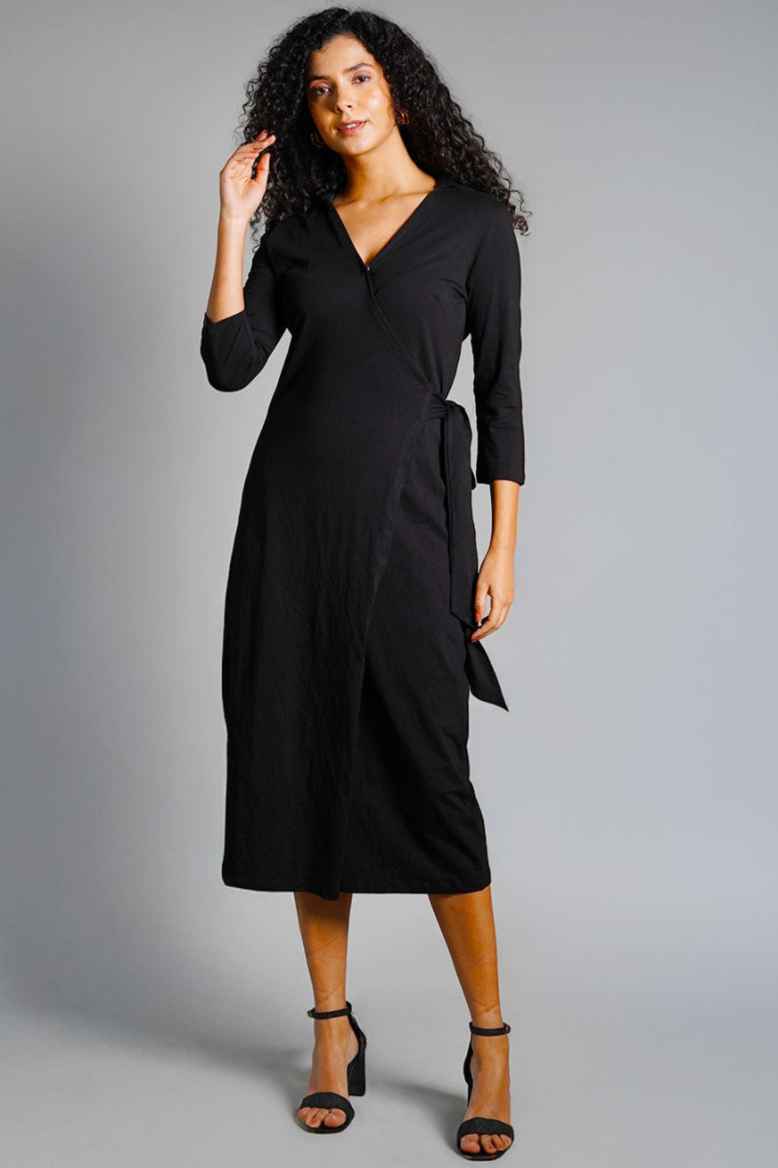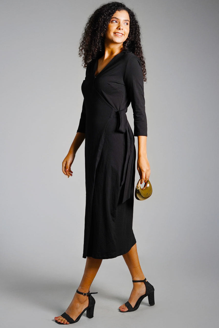 Black Cotton Jersey Wrap Dress