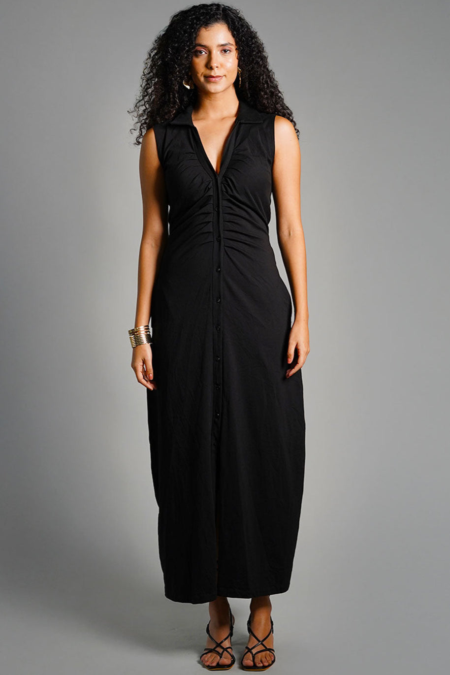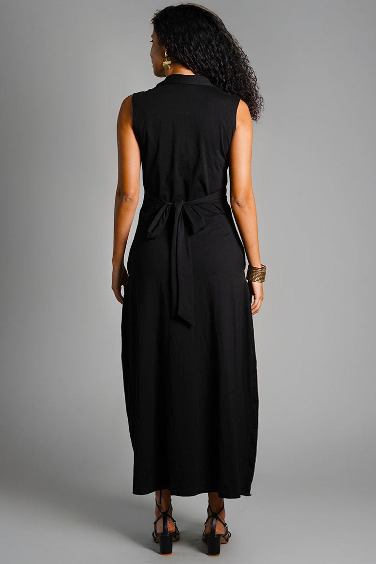 Black Ruched Cotton Jersey Tie-Back Shirt Dress