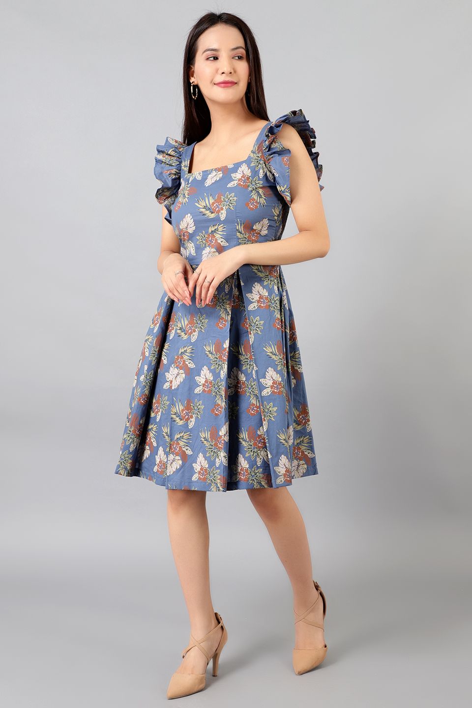 Cotton Midi Blue Dress