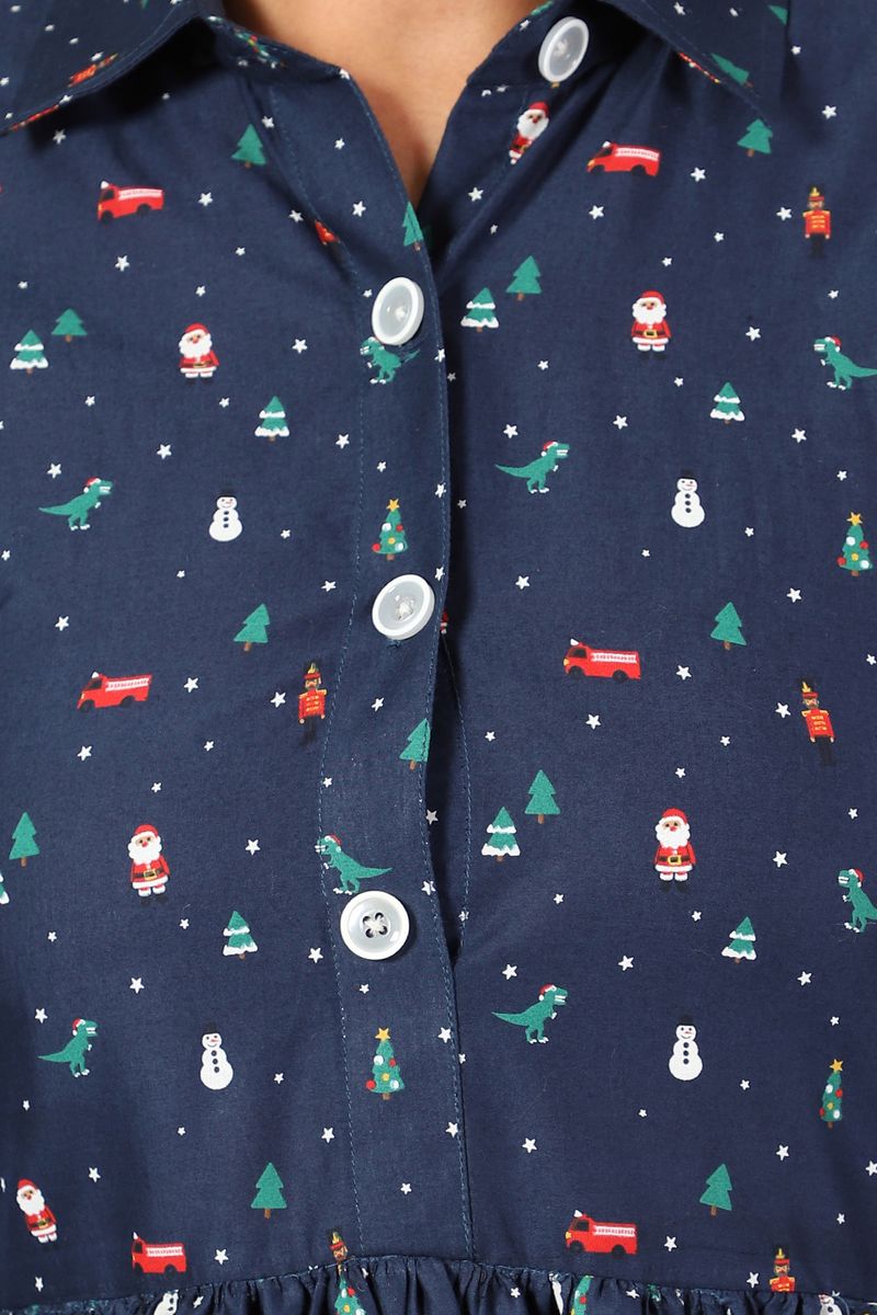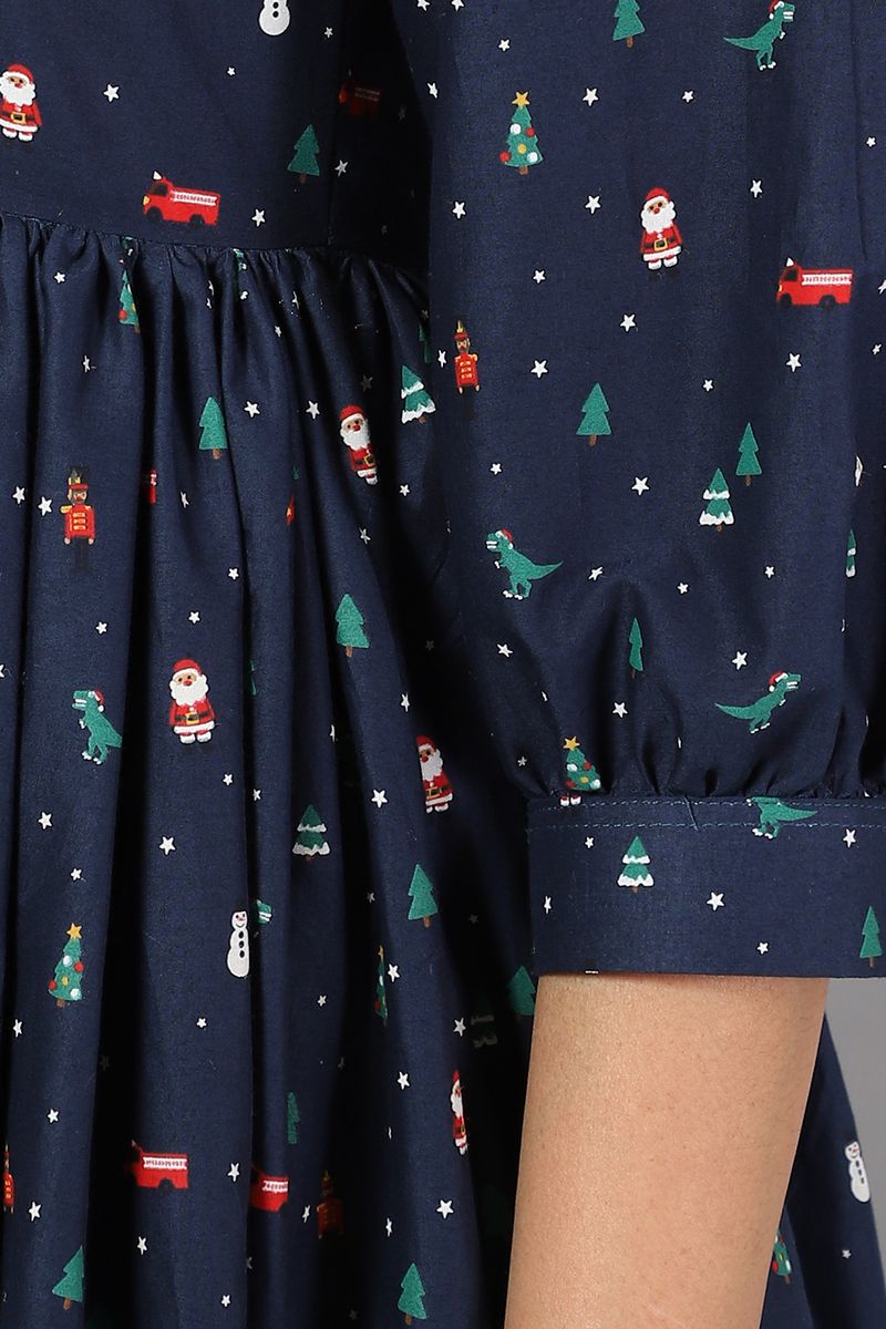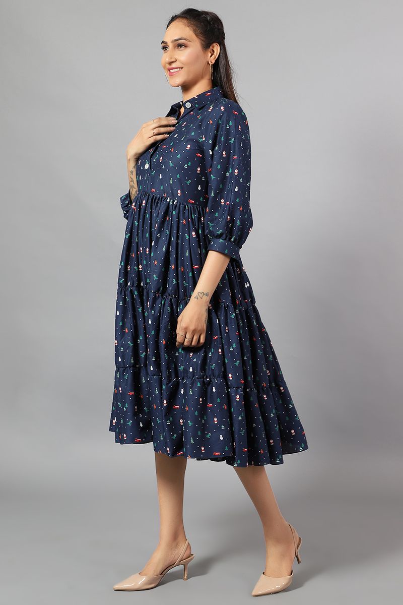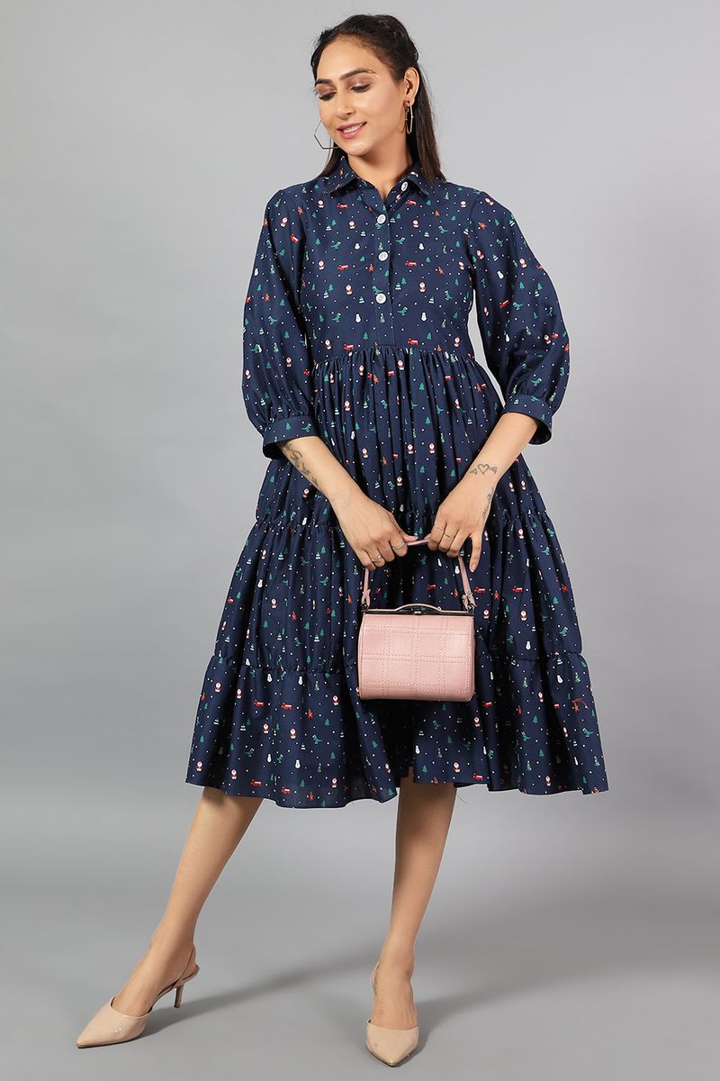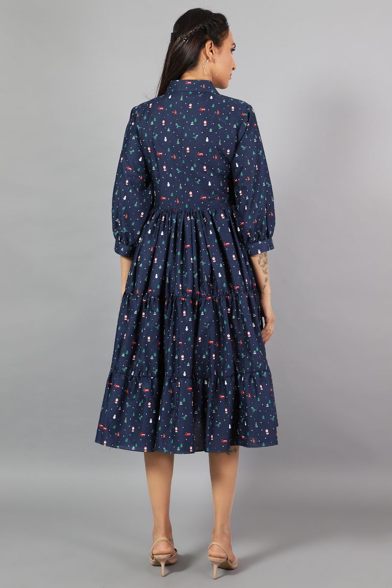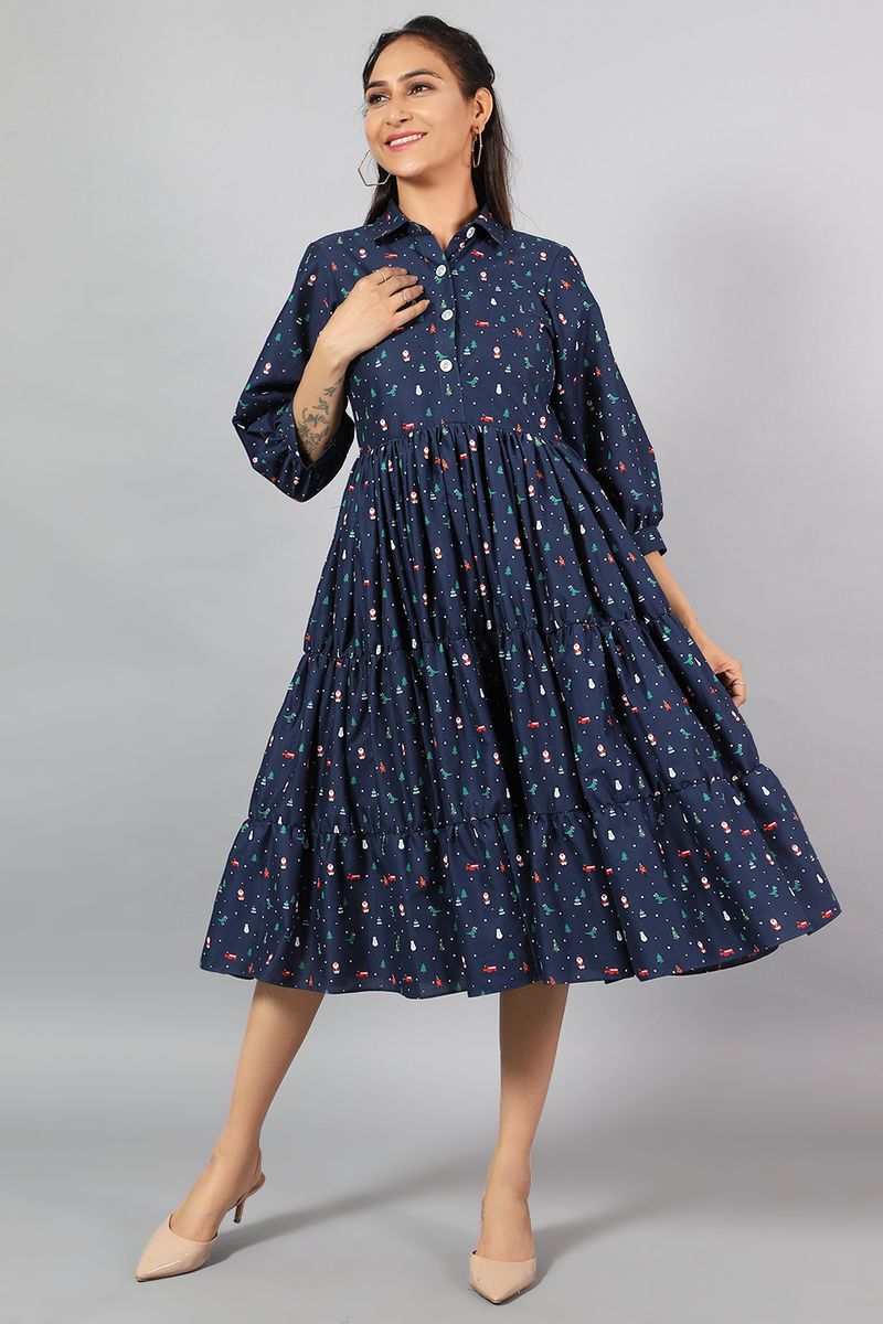 100% Cotton Midi Blue Dress
