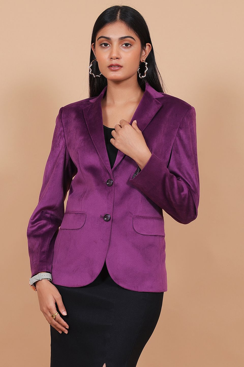 Cotton Velvet Purple Blazer