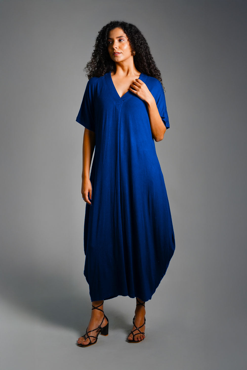 Dolman Sleeve Blue Jersey Knit Shift Dress