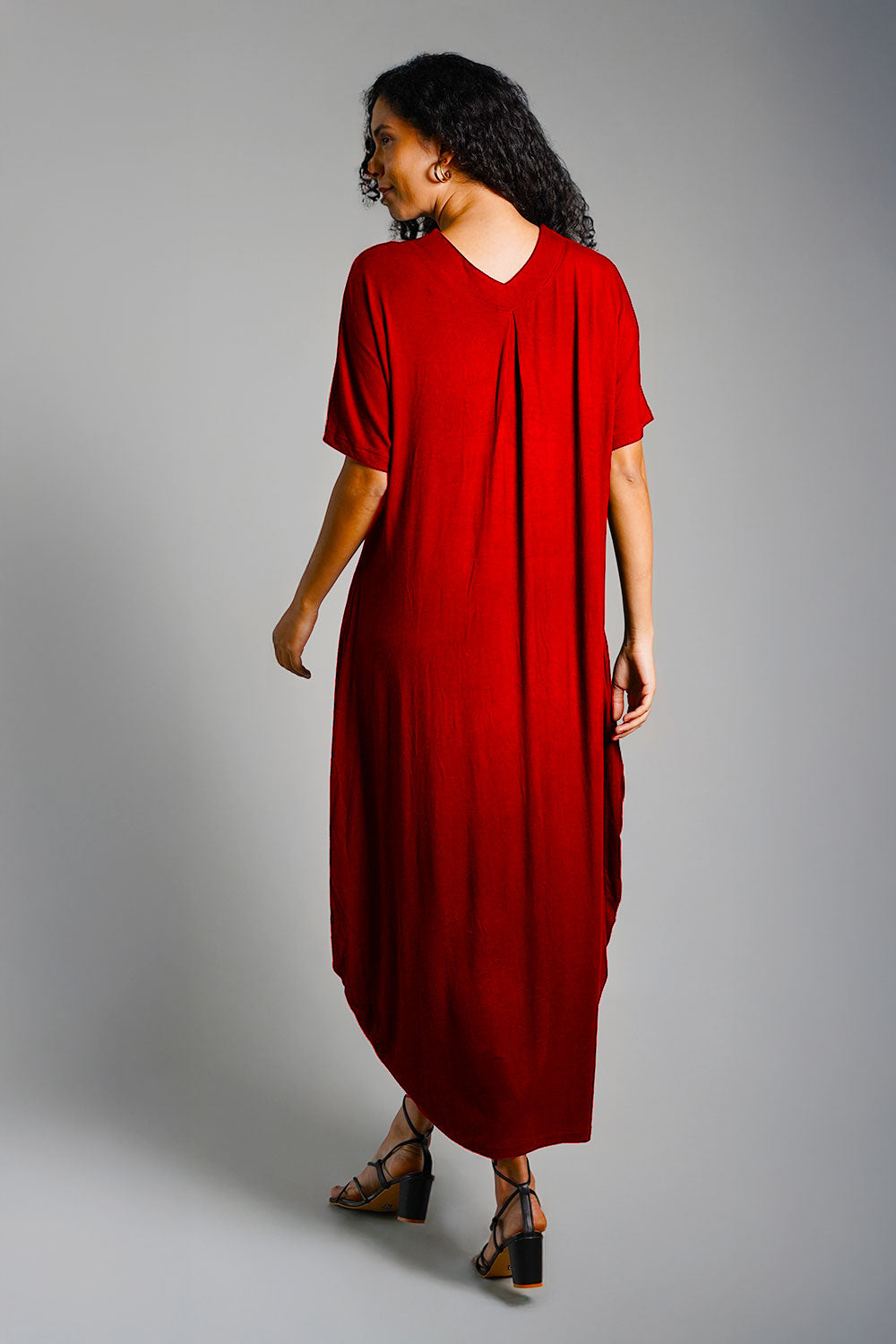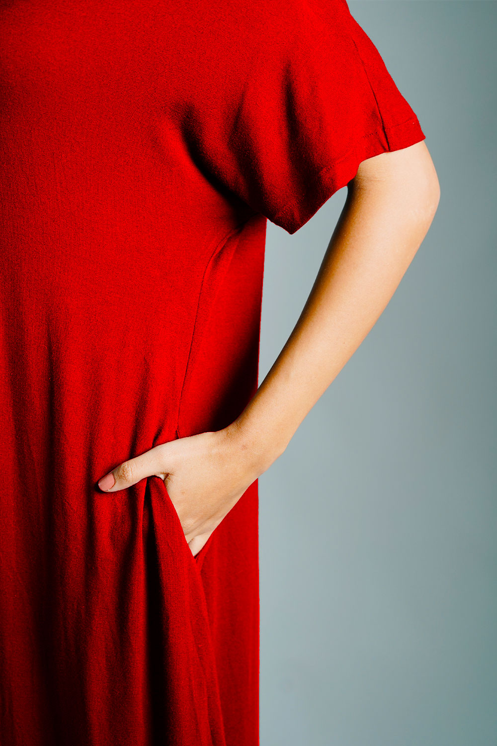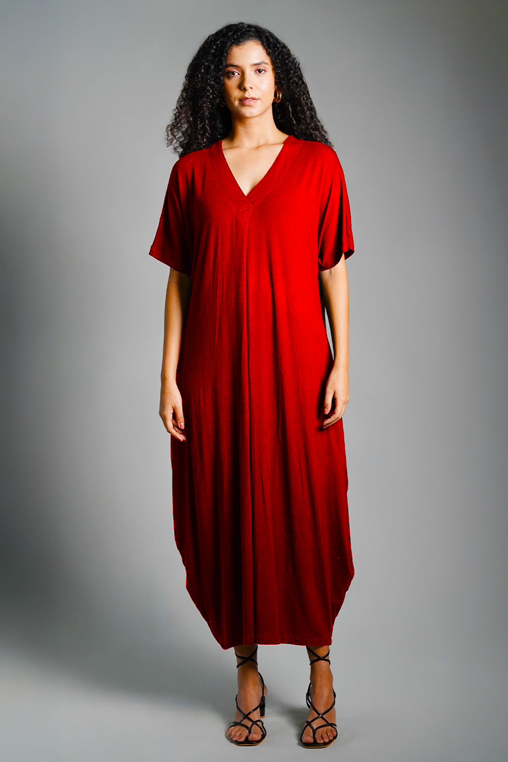 Dolman Sleeve Red Jersey Knit Shift Dress