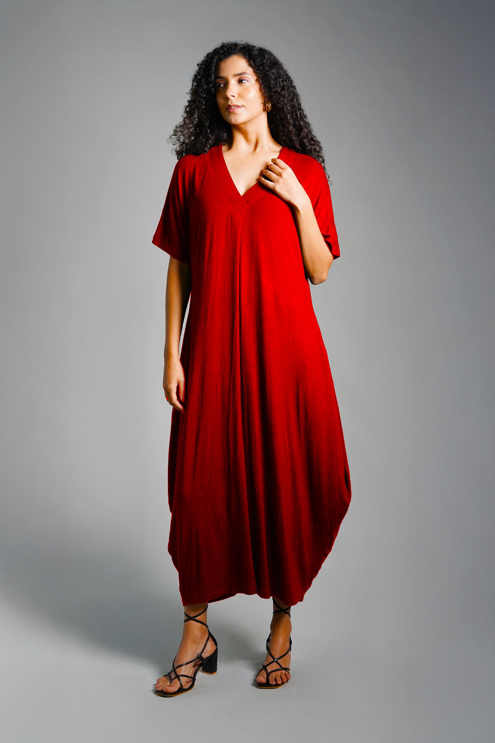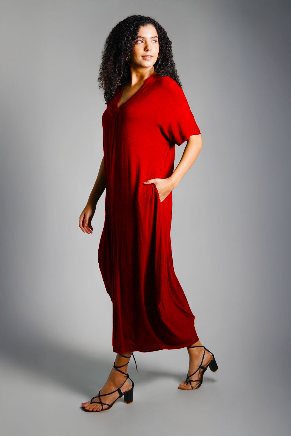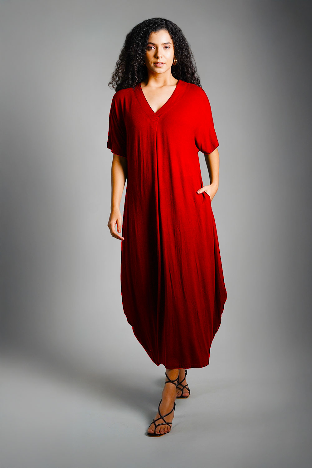 Dolman Sleeve Red Jersey Knit Shift Dress