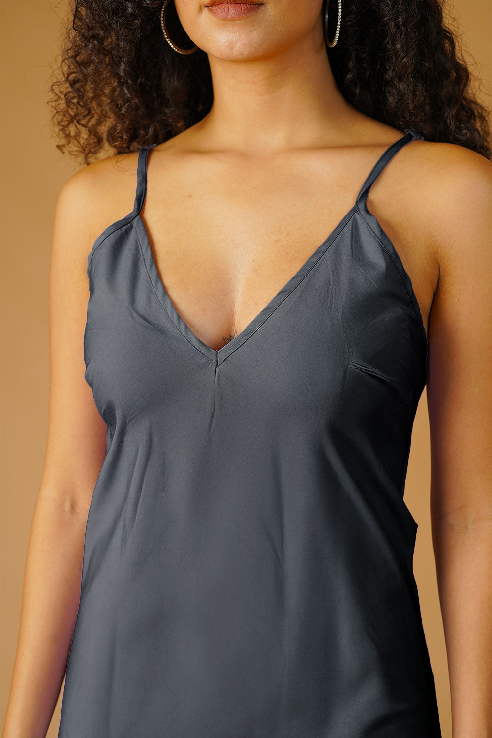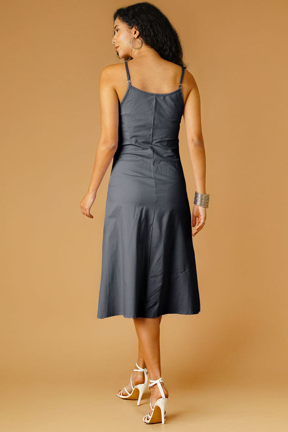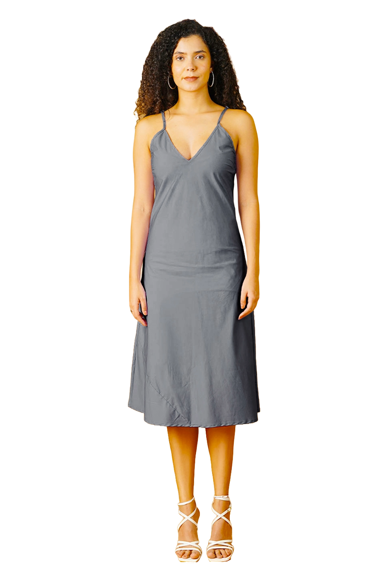 Grey Poplin Midi Dress