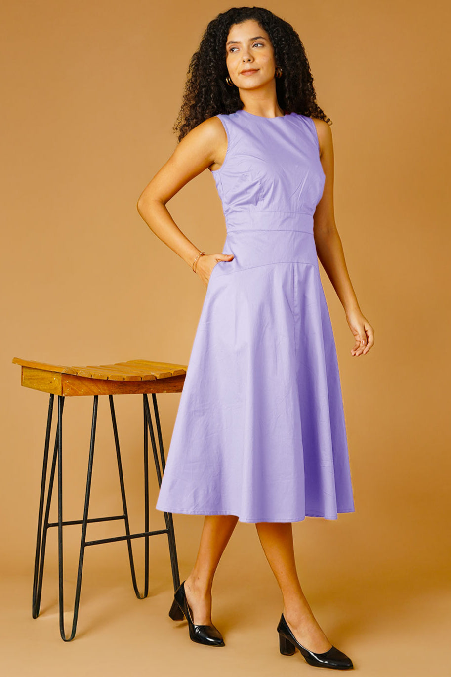 Lavender Poplin Midi Dress