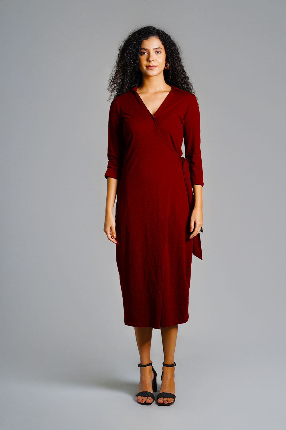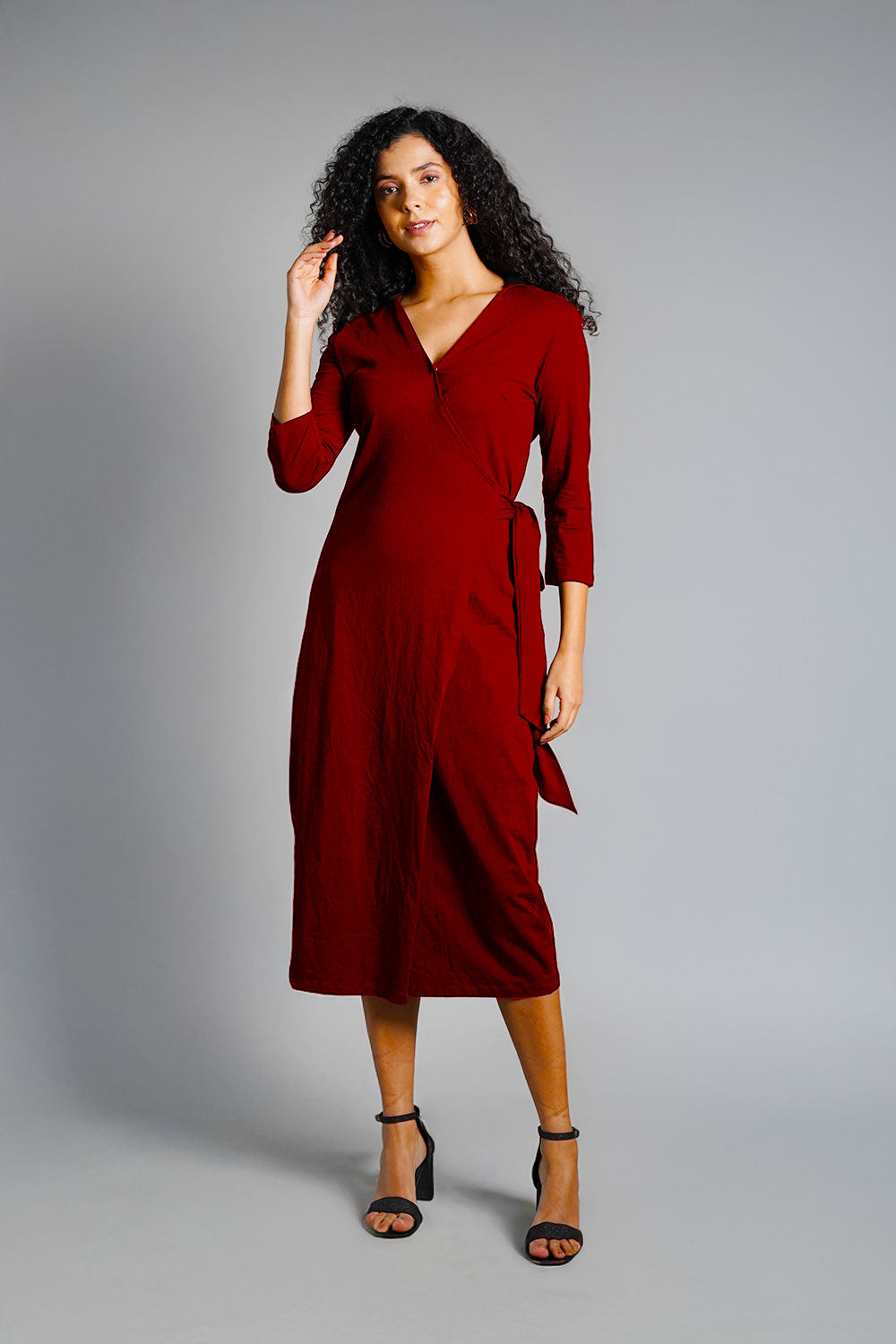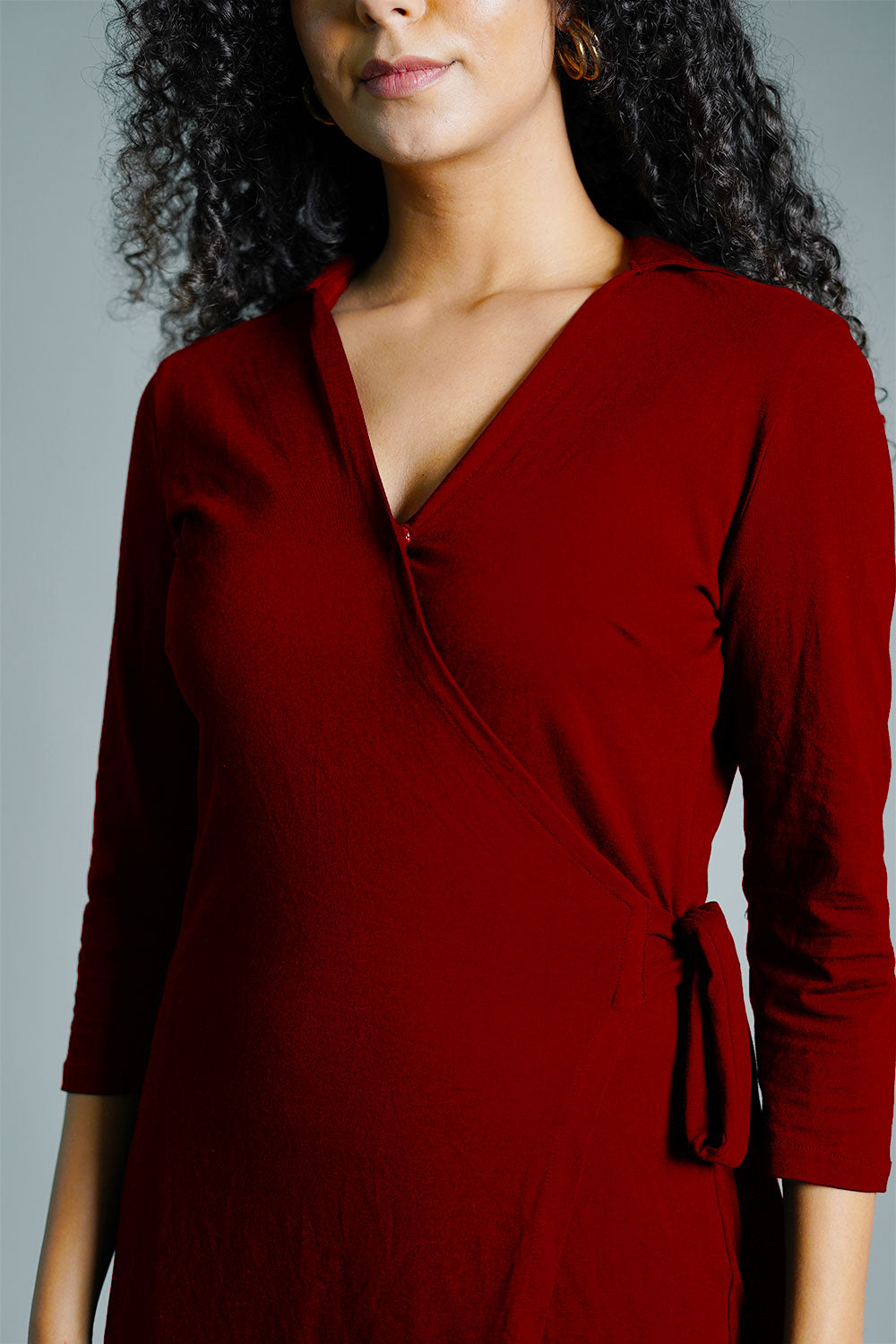 Maroon Cotton Jersey Wrap Dress