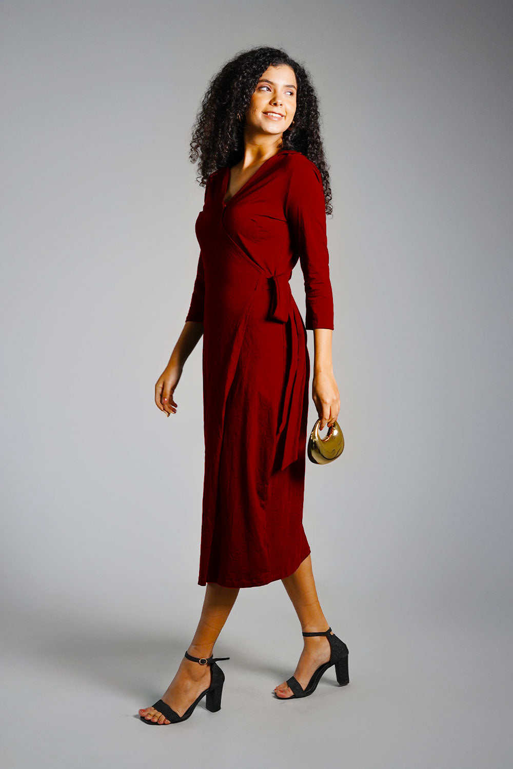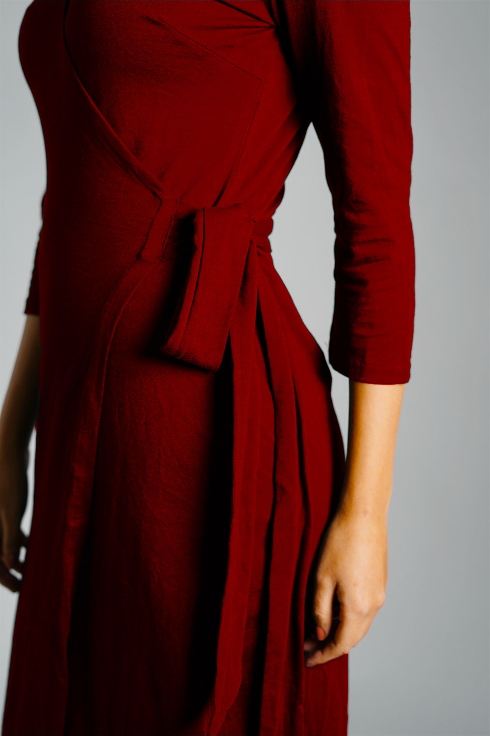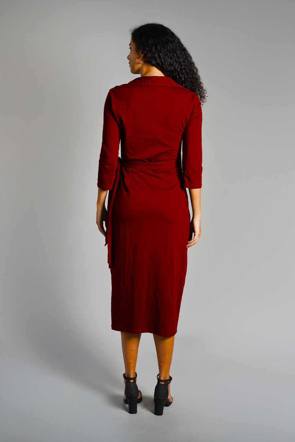 Maroon Cotton Jersey Wrap Dress
