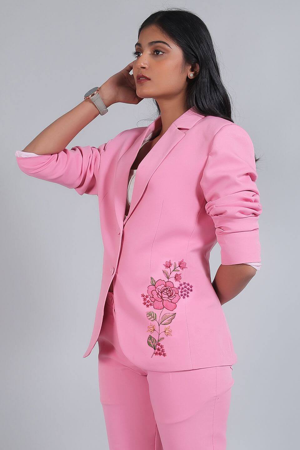 Pink Floral Embroidered Blazer