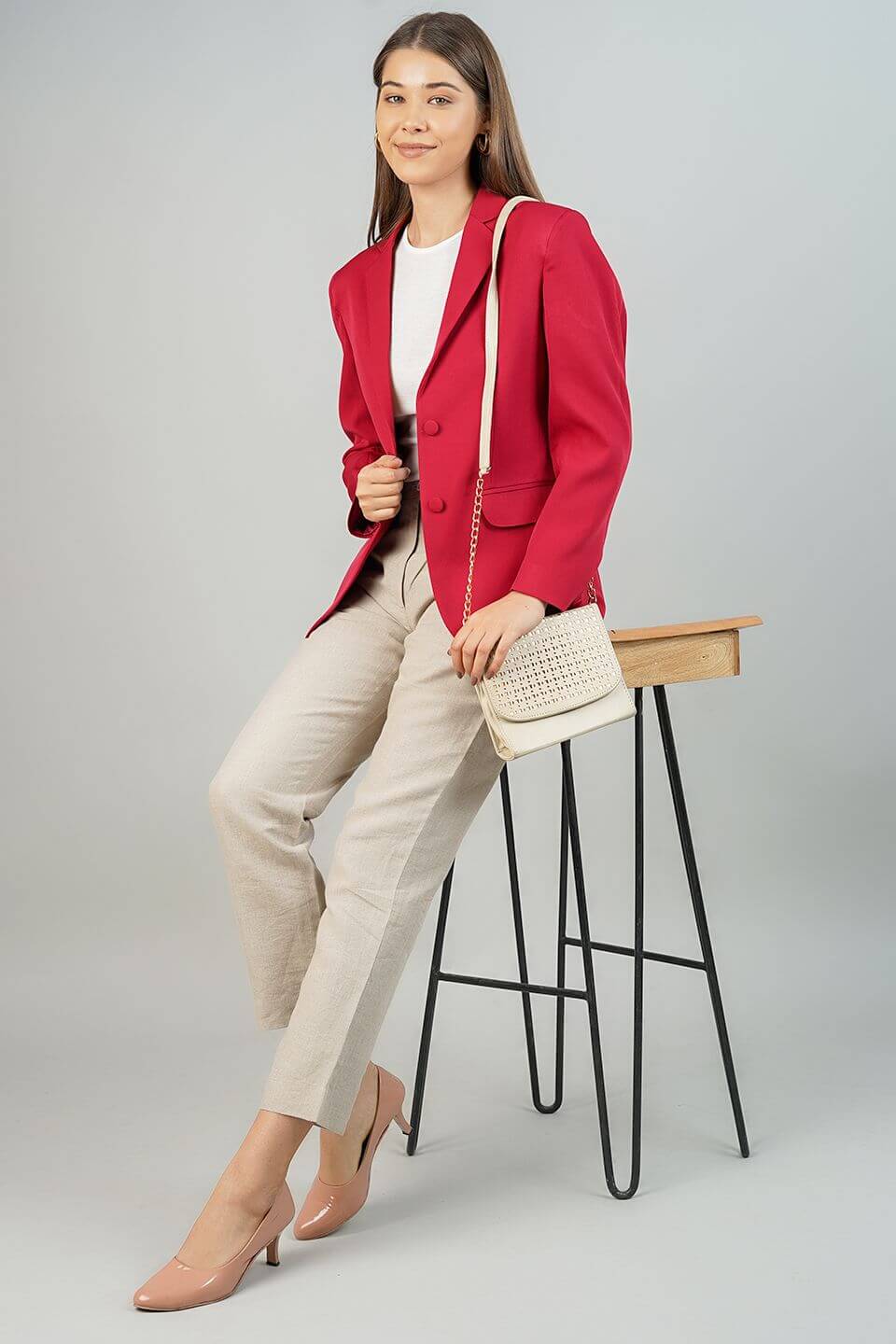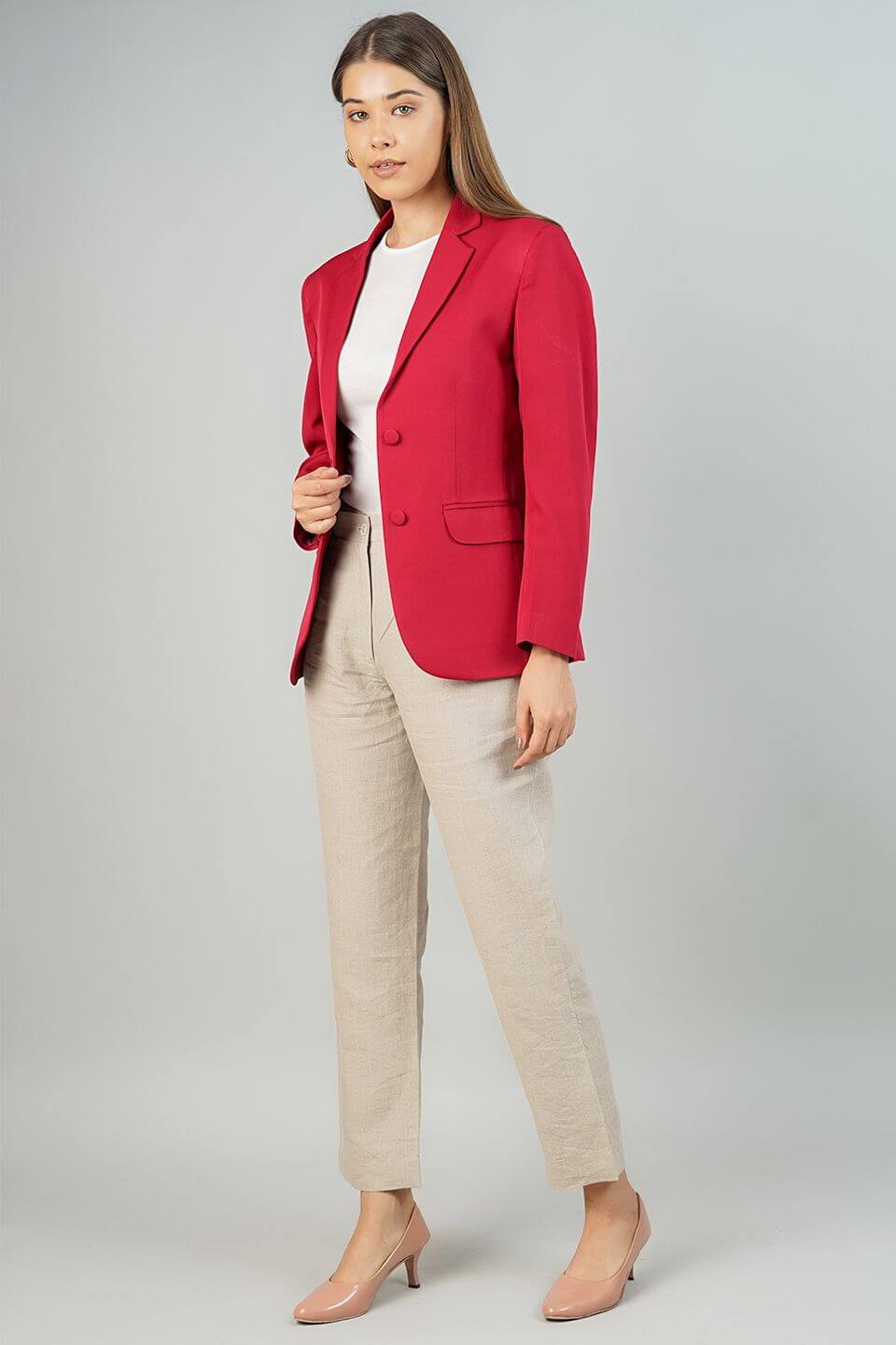 Polyester Cotton Red Blazer