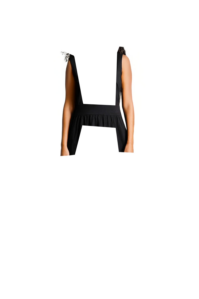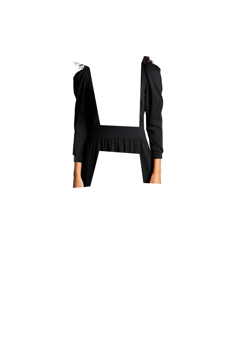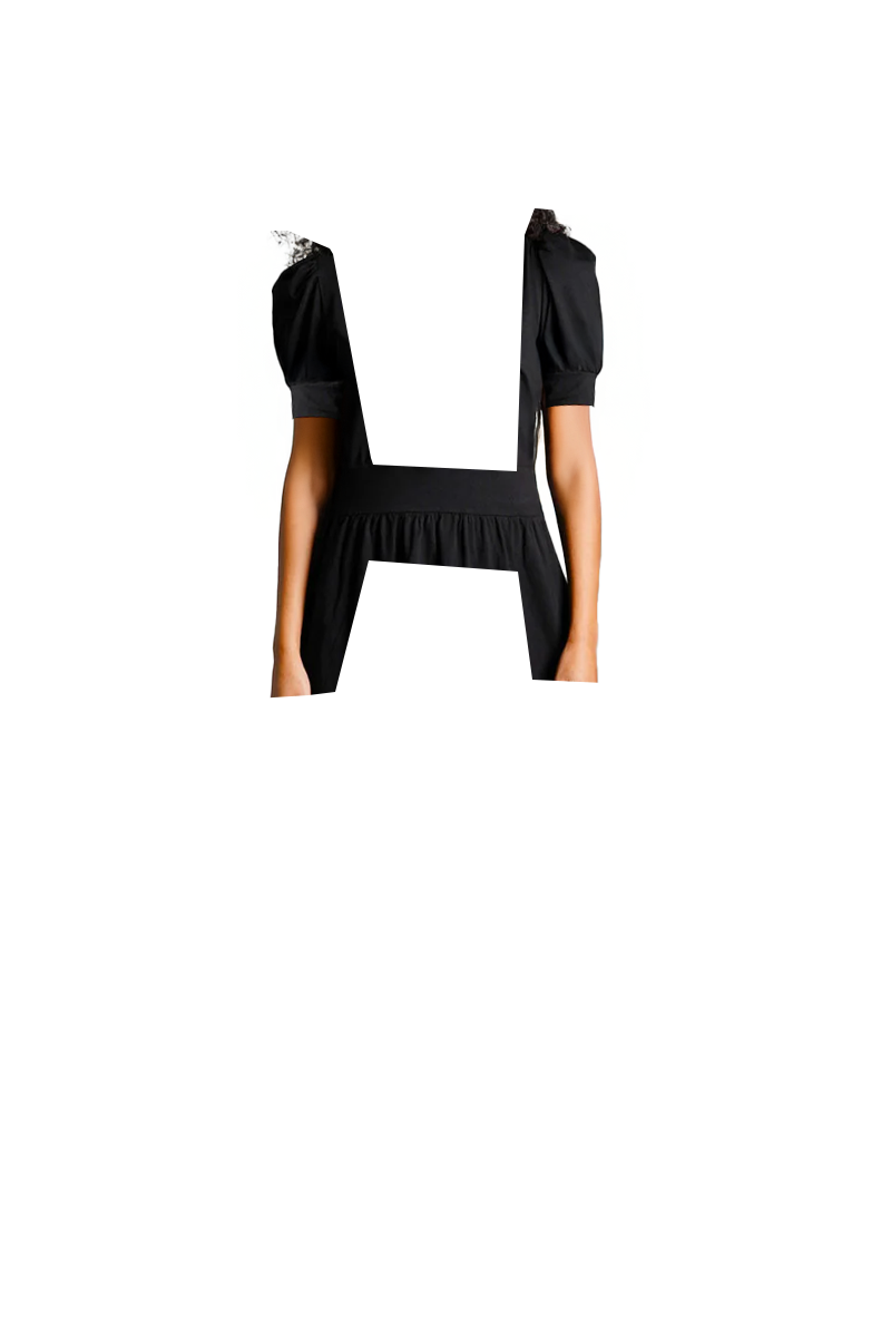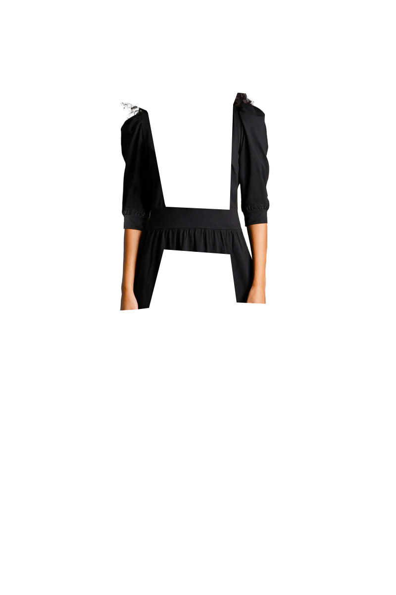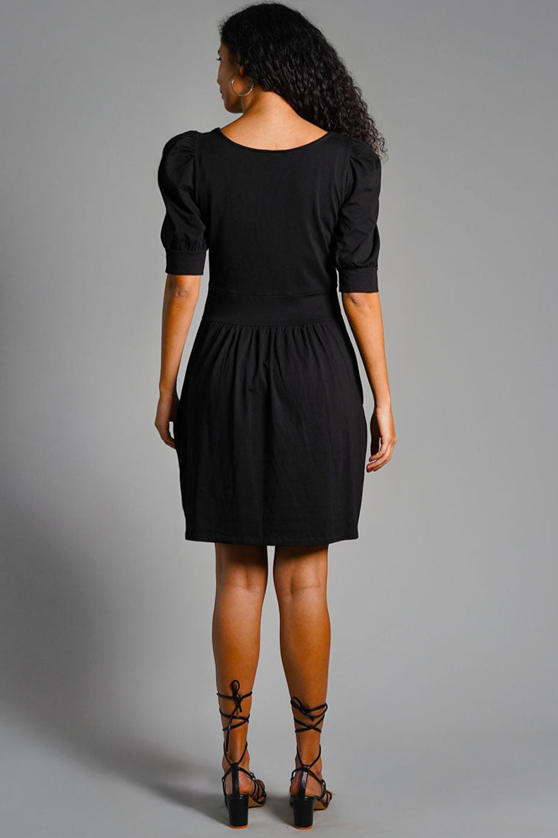 Puff Sleeve Black Cotton Jersey Surplice Dress