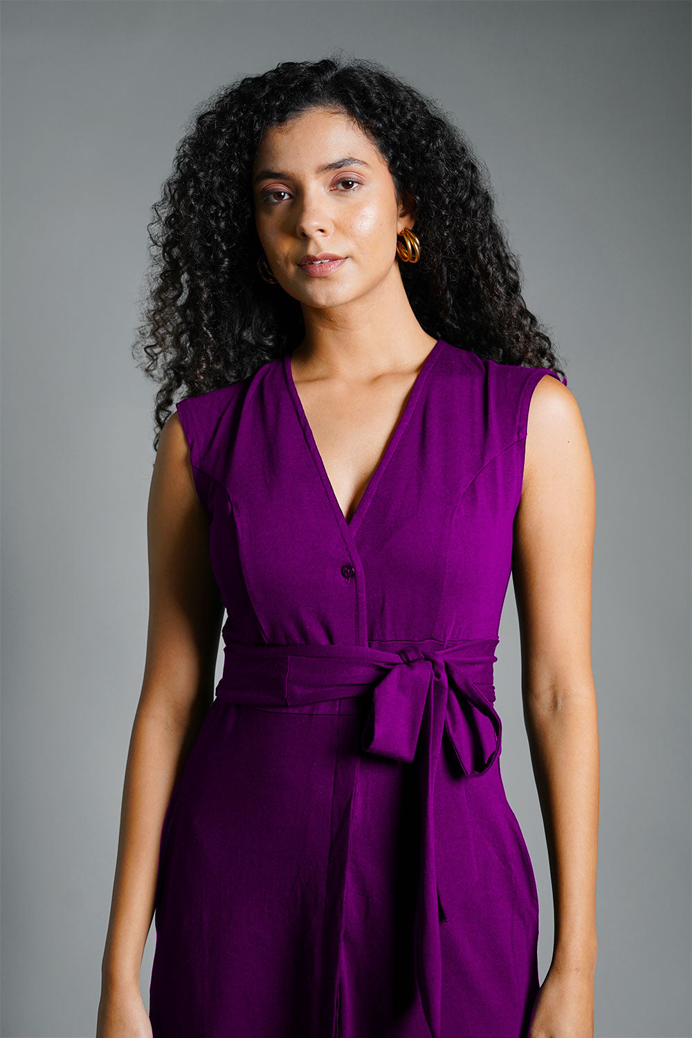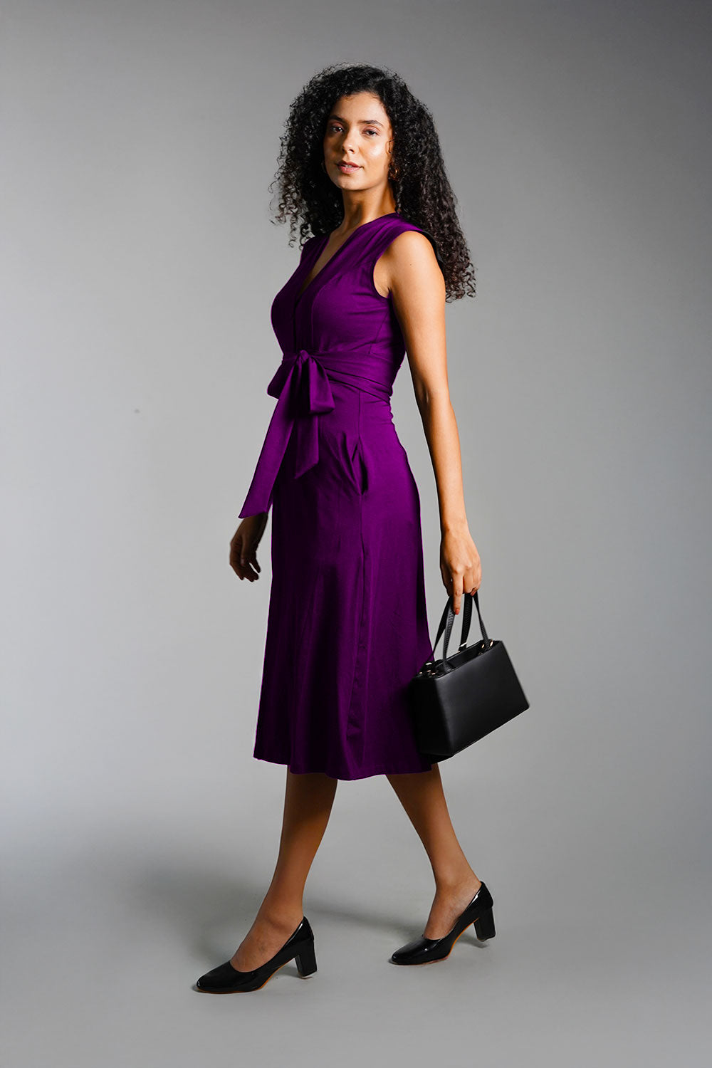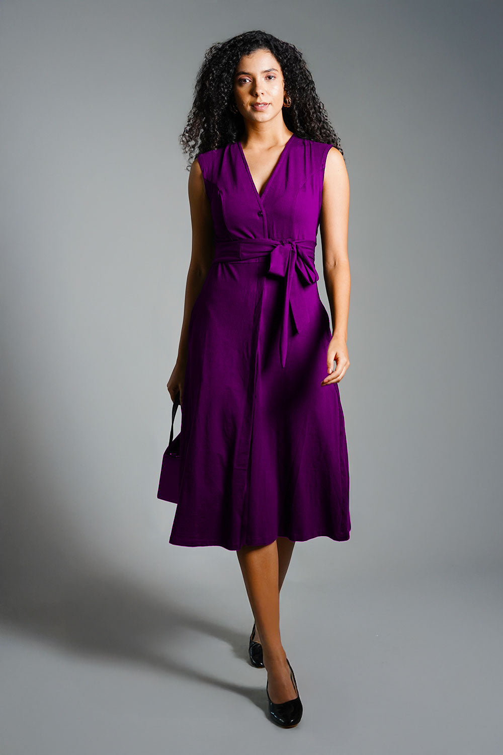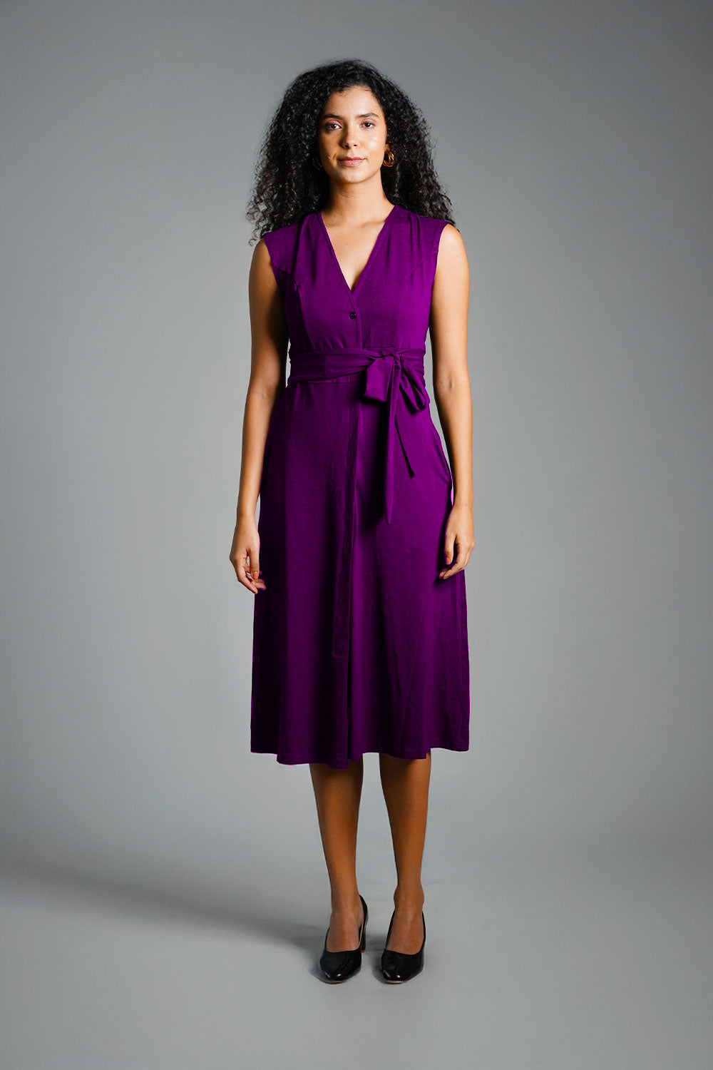 Purple Cotton Jersey Banded Empire Shirt Dress