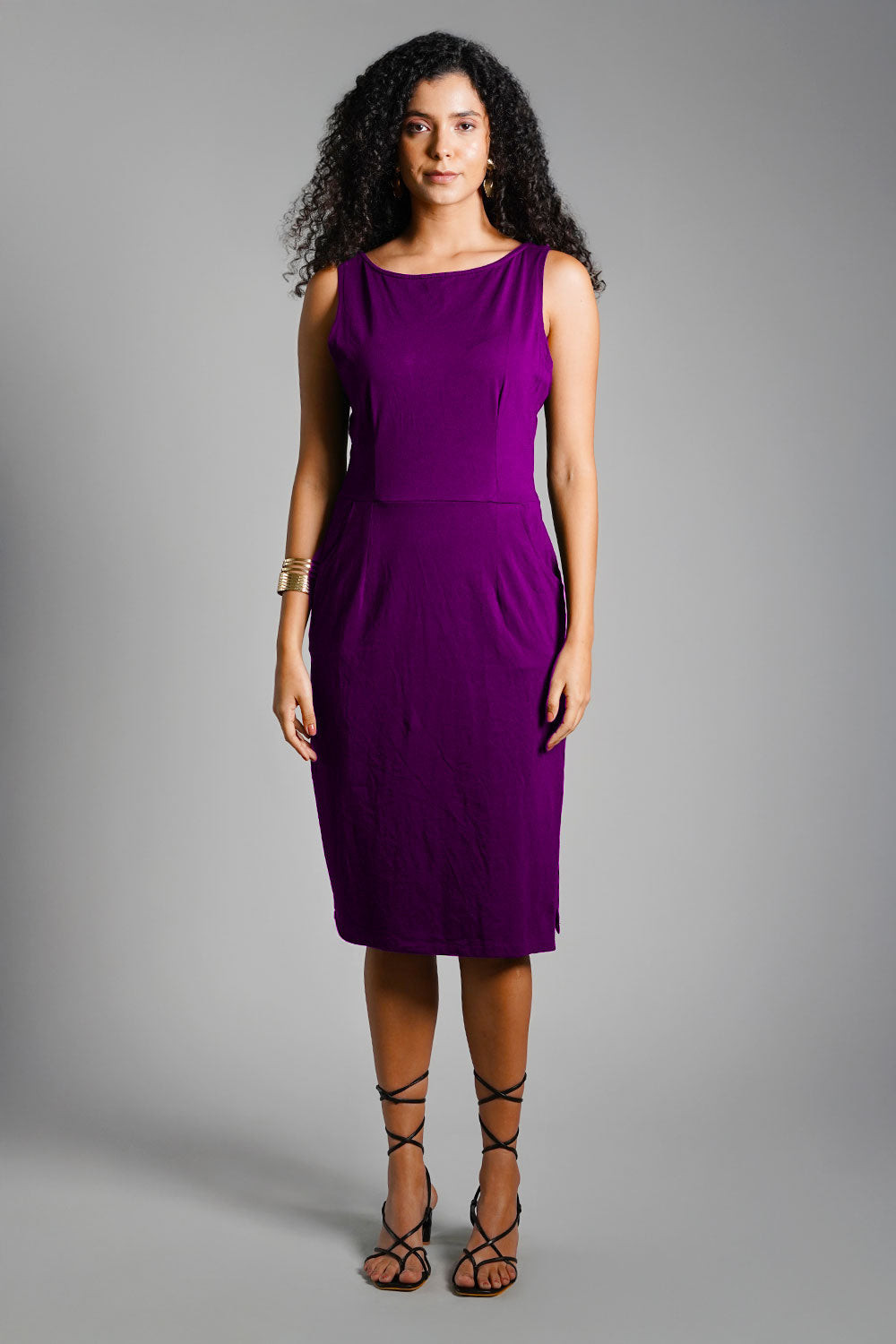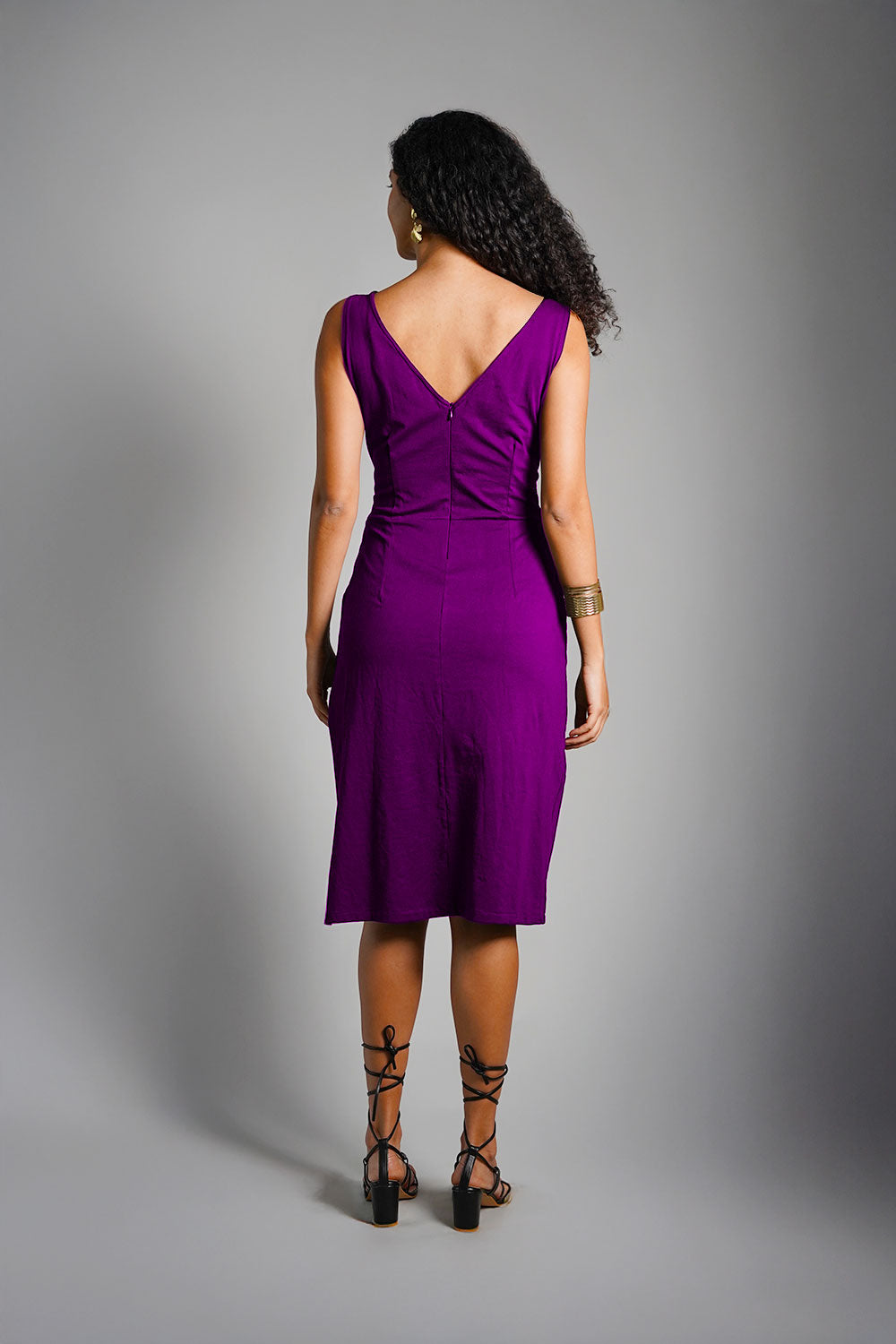 Purple Cotton Jersey Knit Vented Sheath Dress
