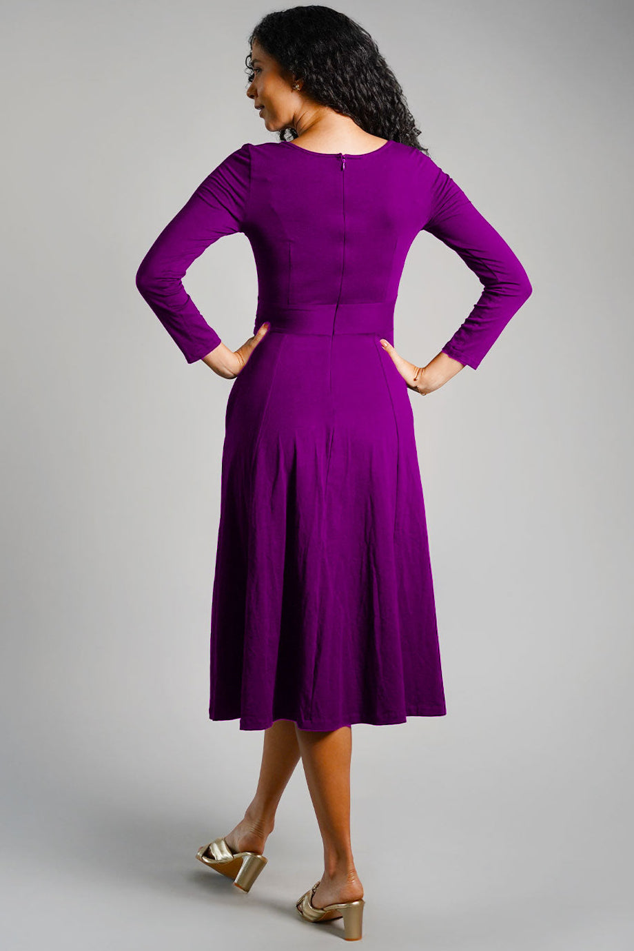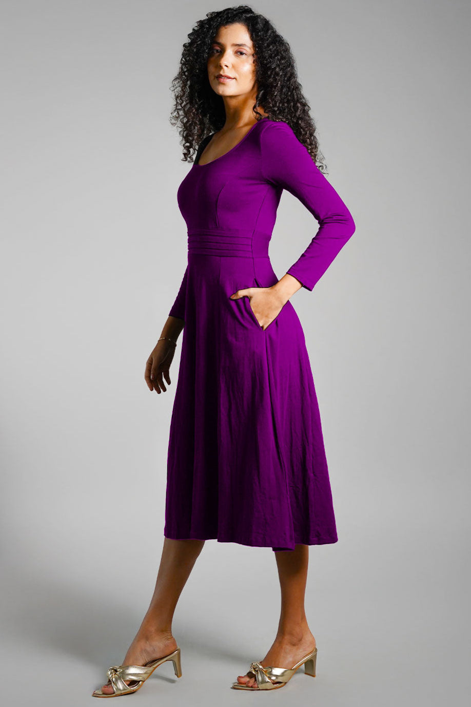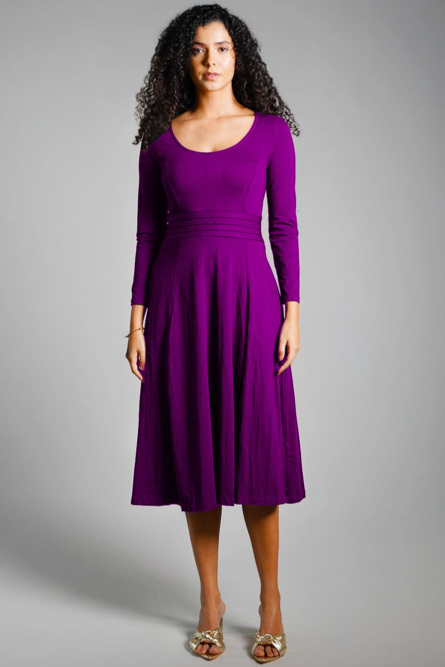 Purple Cotton Jersey Pleat Waist Dress