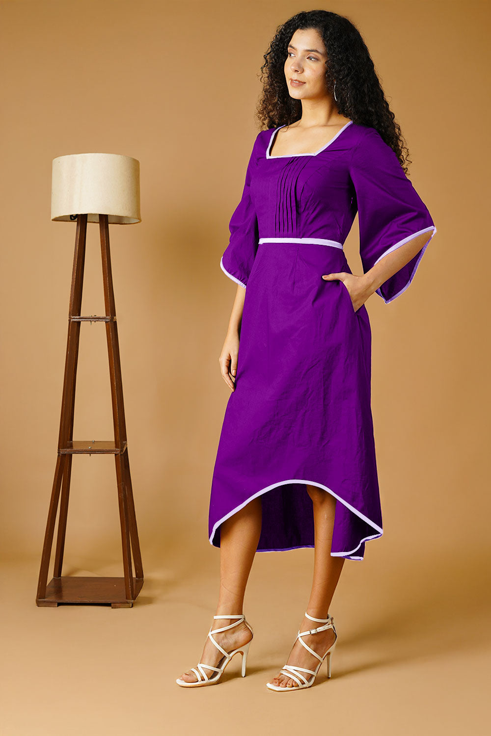 Purple Poplin Midi Dress